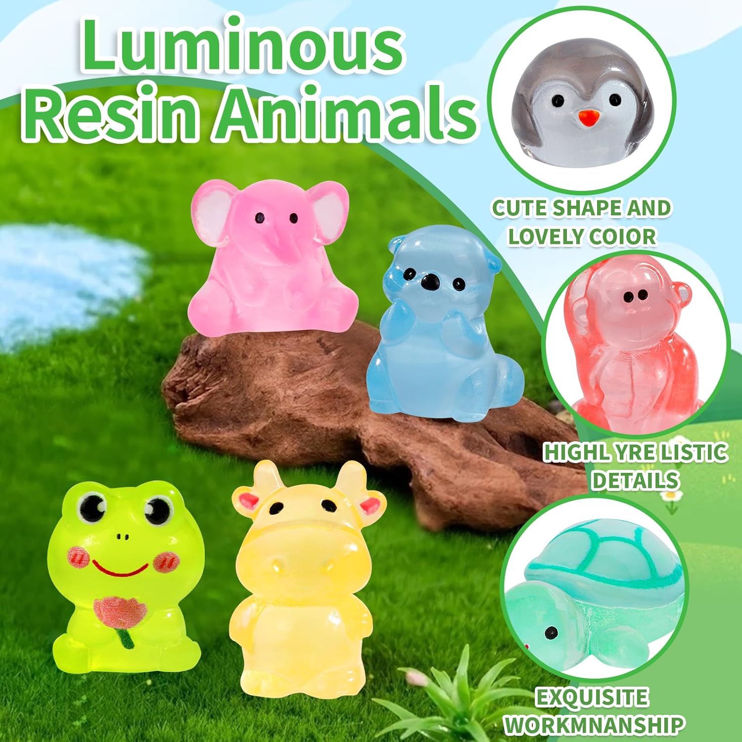 - 【Package Content】You will receive 180pcs luminous mini resin animals in various styles and vibrant colors. A wide mix of animal types and bright color combinations easily meet your DIY decoration needs. Their glowing effect adds a magical touch to your garden or room at night