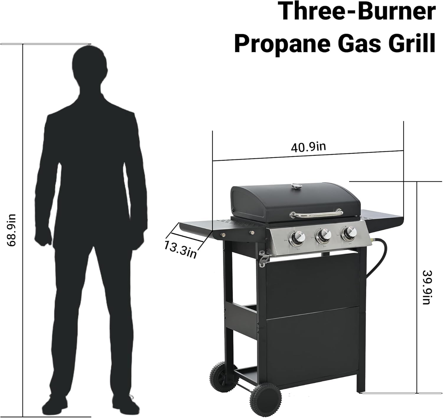 Endark 3-burner propane gas grill | 26,000 BTU stainless steel with enamel wire cooking grates and built-in thermometer | with side rack wheels | great for patio, garden, and outdoor cooking