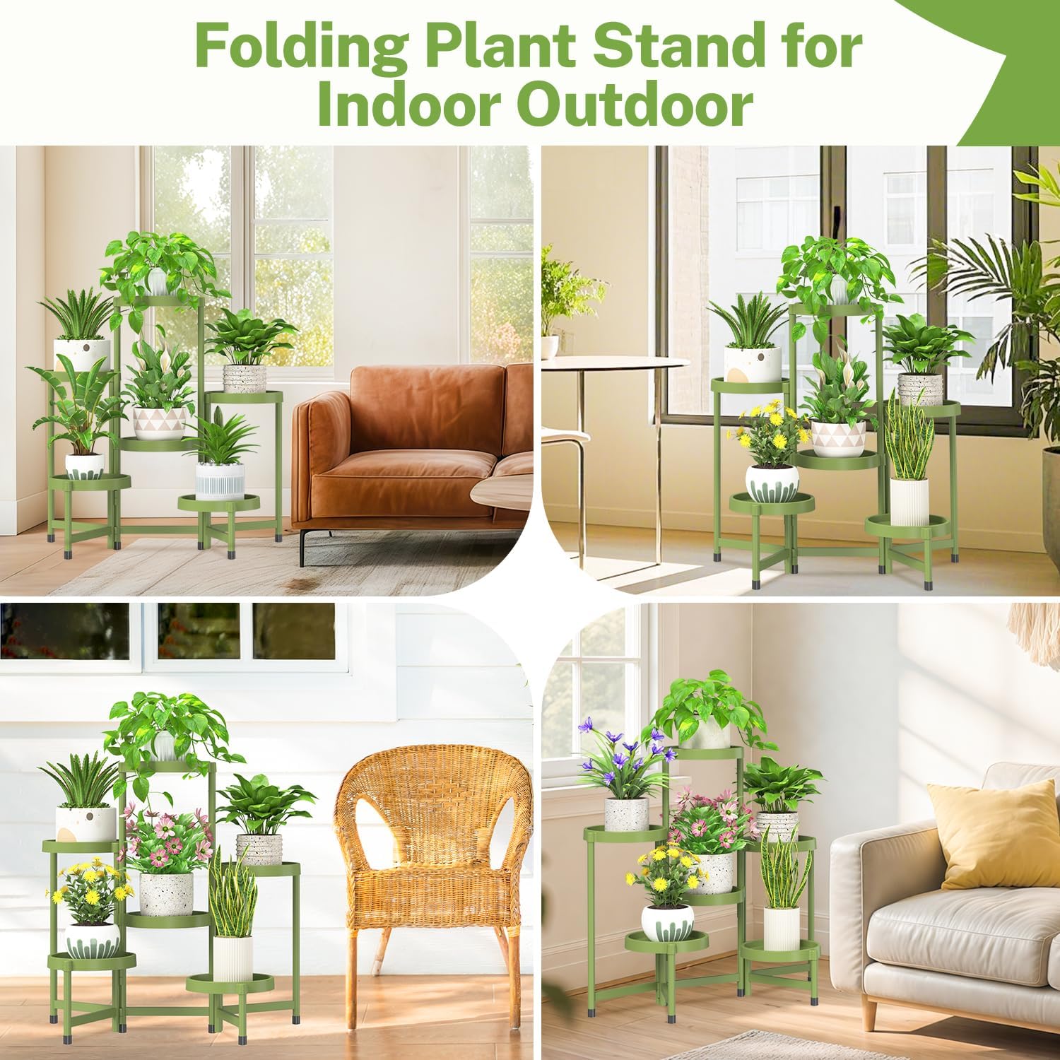 - Space Saving Foldable and Adjustable Design: You can effortlessly adjust the display angle of the plant stand outdoor by rotating outermost pipes, ensuring your plants are attractively presented. When not in use, it can be fully folded for easy storage
