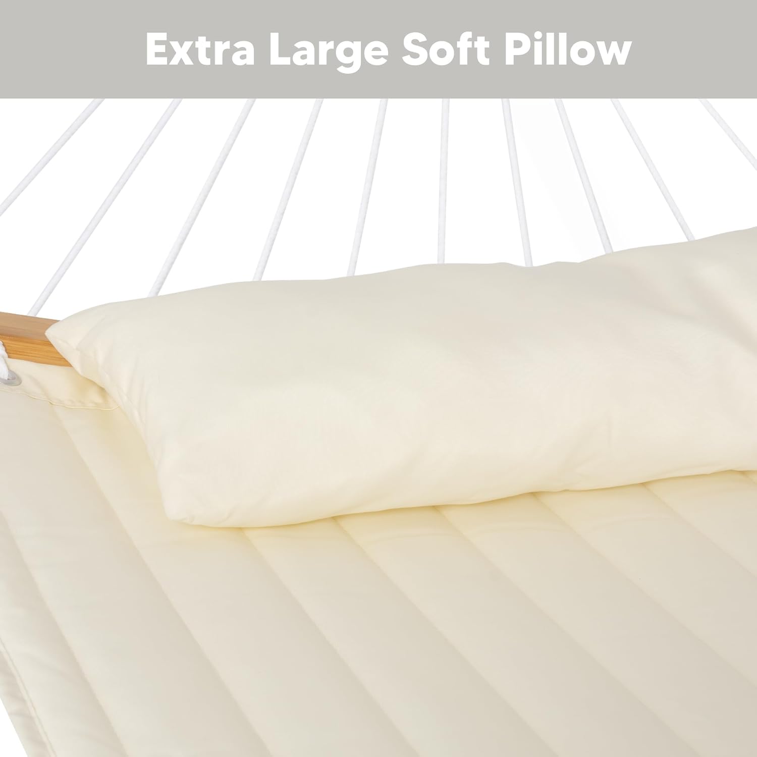 - Comfortable and Non-fading: Two-layer 100% quilted polyester fabric with poly fiber filling, cozier and best for camping and the outdoors. Compared with other quilted hammocks, it will not fade after long-term use. A polyethylene-stuffed head pillow offers superior comfort. You can even set your preferred height by hooking the suitable chain section to the hooks on the stand