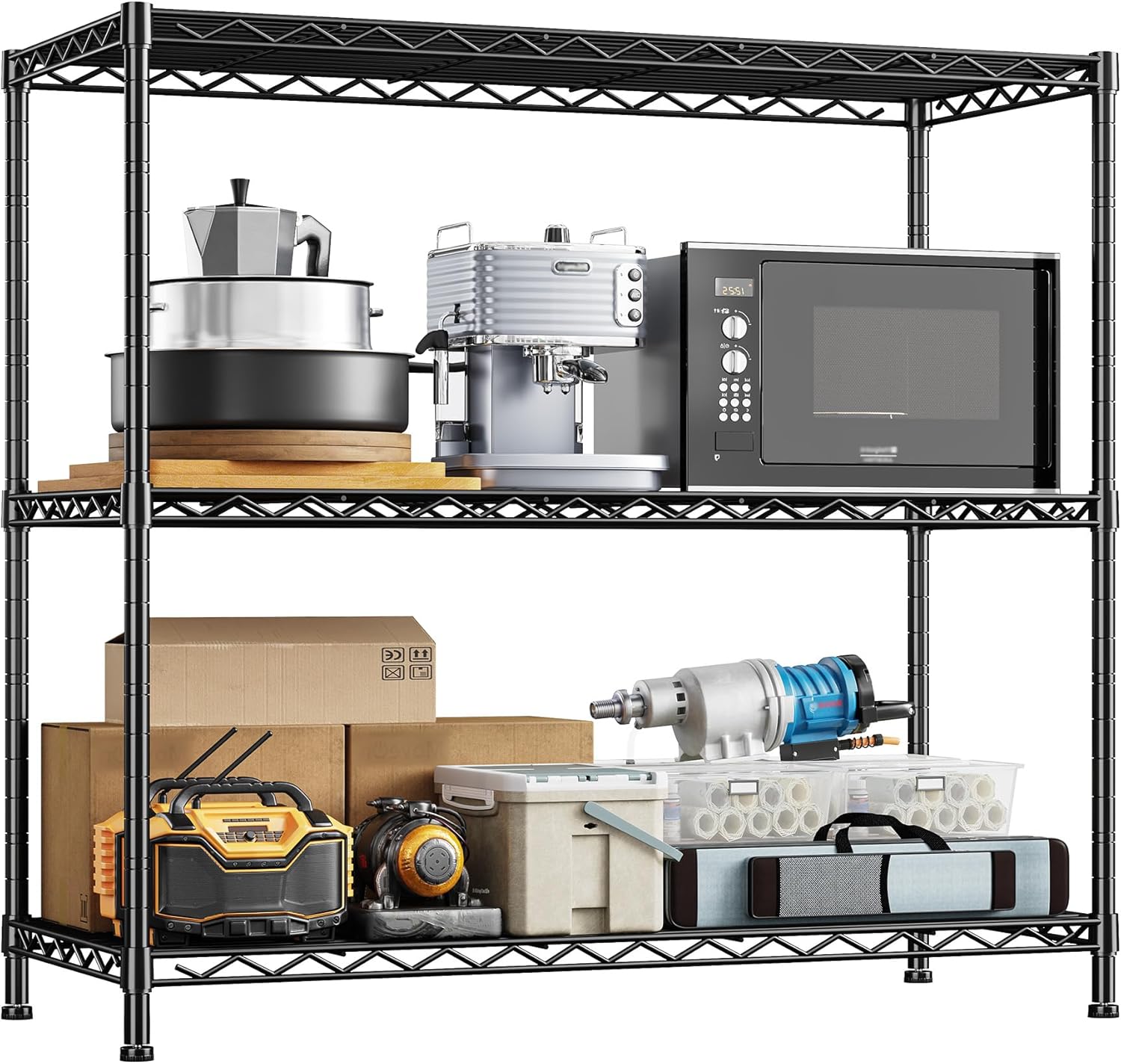 3- Shelf Metal Shelving Unit 35.6Wx14Dx36H Adjustable Storage Shelves Heavy Duty Garage Shelving Steel Wire Shelving for Laundry Bathroom Kitchen Pantry Closet Garage Black
