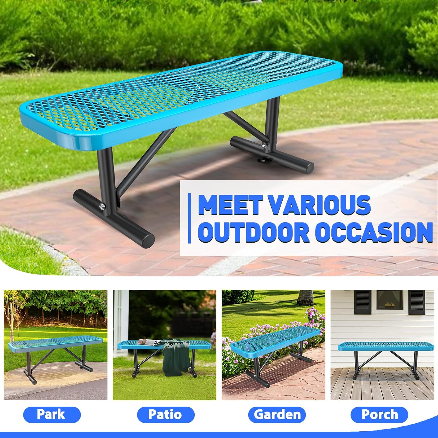 Heavy-Duty Park Bench or Table for Outside - Black Coated Outdoor Furniture Steel Bench, Commercial-Grade Outdoor Benches Weatherproof for Park, Patio, Porch (Blue, 4FT (Without Backrest))