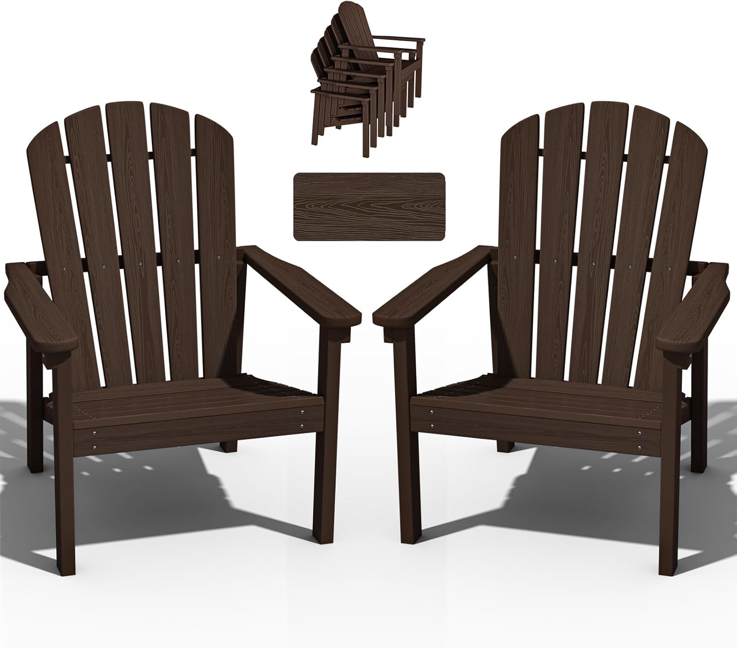 Stackable Adirondack Chair Set of 2, HDPE Outdoor Patio Chair - Durable and Space Saving, Suitable for Porches, Lawns or Garden, Coffee