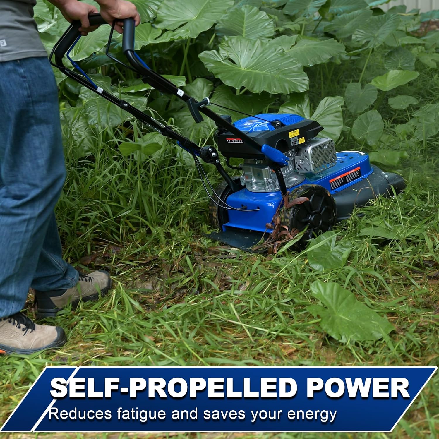 - POWERFUL 170CC ENGINE: Powered by a robust 170cc 4-cycle OHV engine, this self-propelled string trimmer is built to eat through thick overgrown grass, stubborn weeds, and light brush with ease. The manual recoil ignition ensures quick and reliable starts for every demanding task.