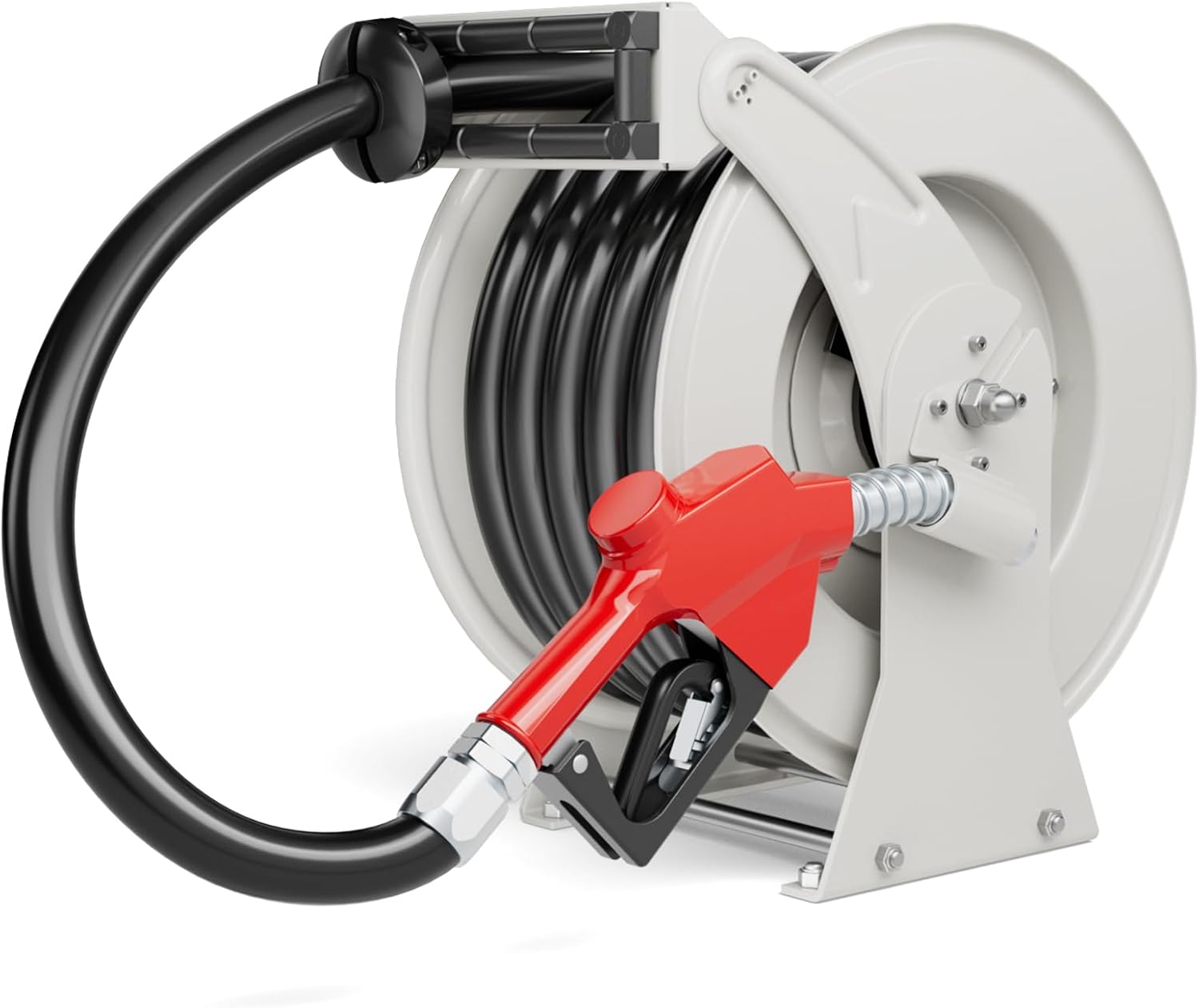 - Compatibility and 360° Fefueling Nozzle: Retractable fuel hose reel compatibility with diesel, fuel, kerosene, mineral oil, gasoline. 360° rotating refueling nozzle prevents leakage and hose twisting during refueling. The reel is well-suited to all industries including agriculture, Industrial, mining, and transportation. Premium 3/4" NPT integrated outlet fitting to prevent corrosion and fuel leaks