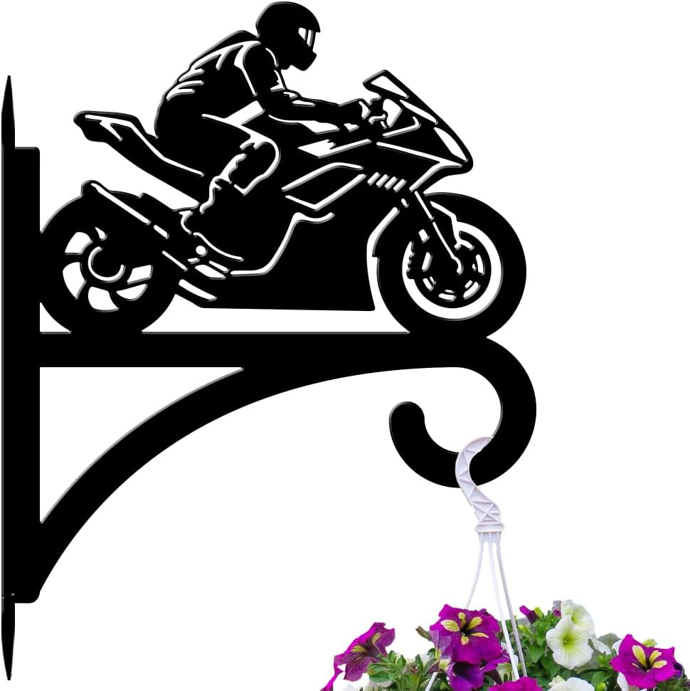 peacoblue Iron Plant Hangers Hooks for Outdoor Indoor Hanging Plants Flower Fern Pots Lantern Bird Feeder,11.8"x15.1" Weather Resistant Metal Wall Holder for Porch Garden Farmhouse(Motorcycle)