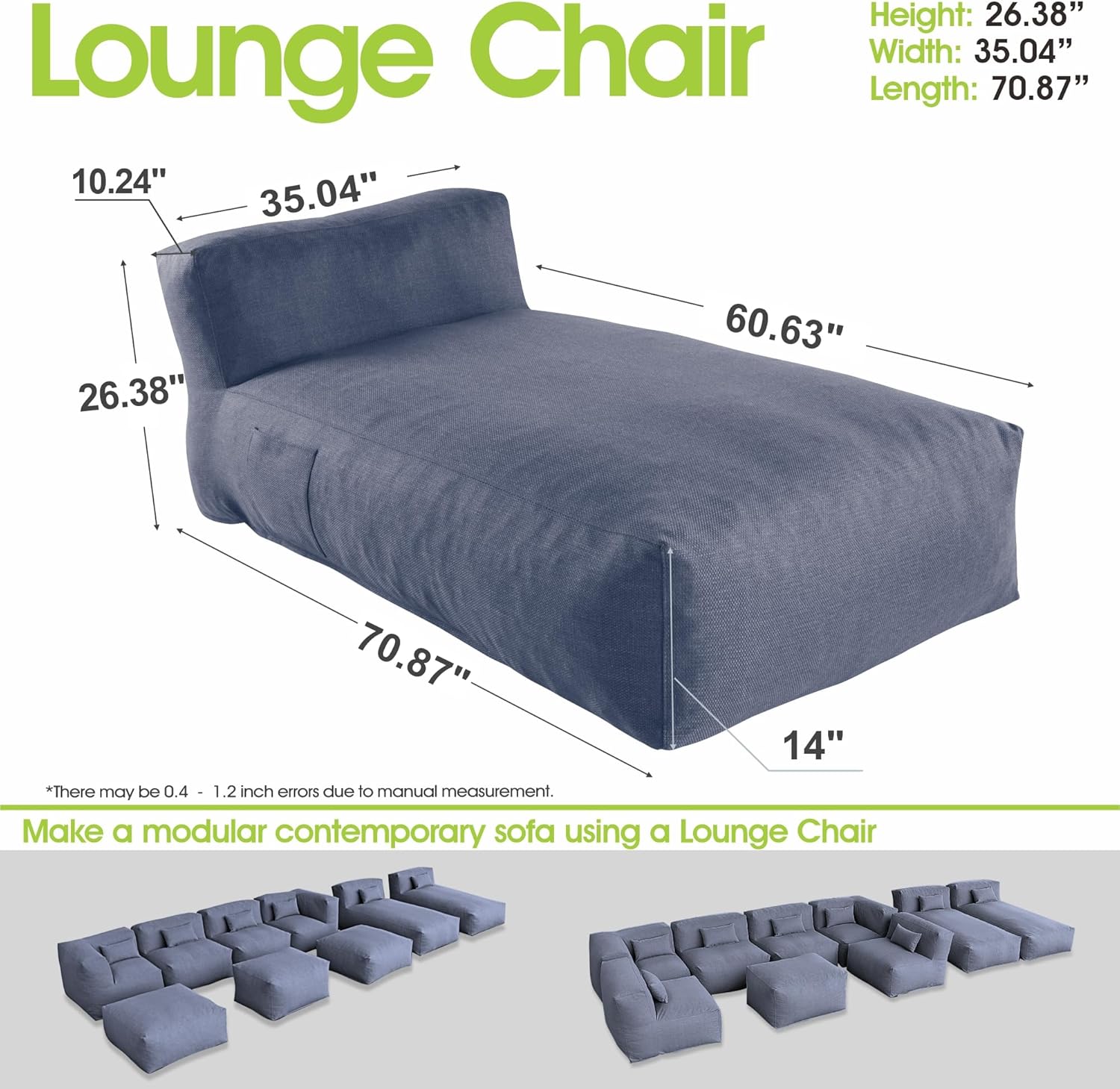 - Oversized Outdoor Bean Bag Lounger for Relaxation & Sunbathing - Stretch out and unwind with this large outdoor bean bag lounger chair, perfect for sunbathing, tanning, or poolside lounging. Designed with generous dimensions (70.87" L x 35.04" W), it functions as a patio daybed, chaise lounge, or outdoor futon, bringing resort-style comfort to your deck, yard, or beach house.