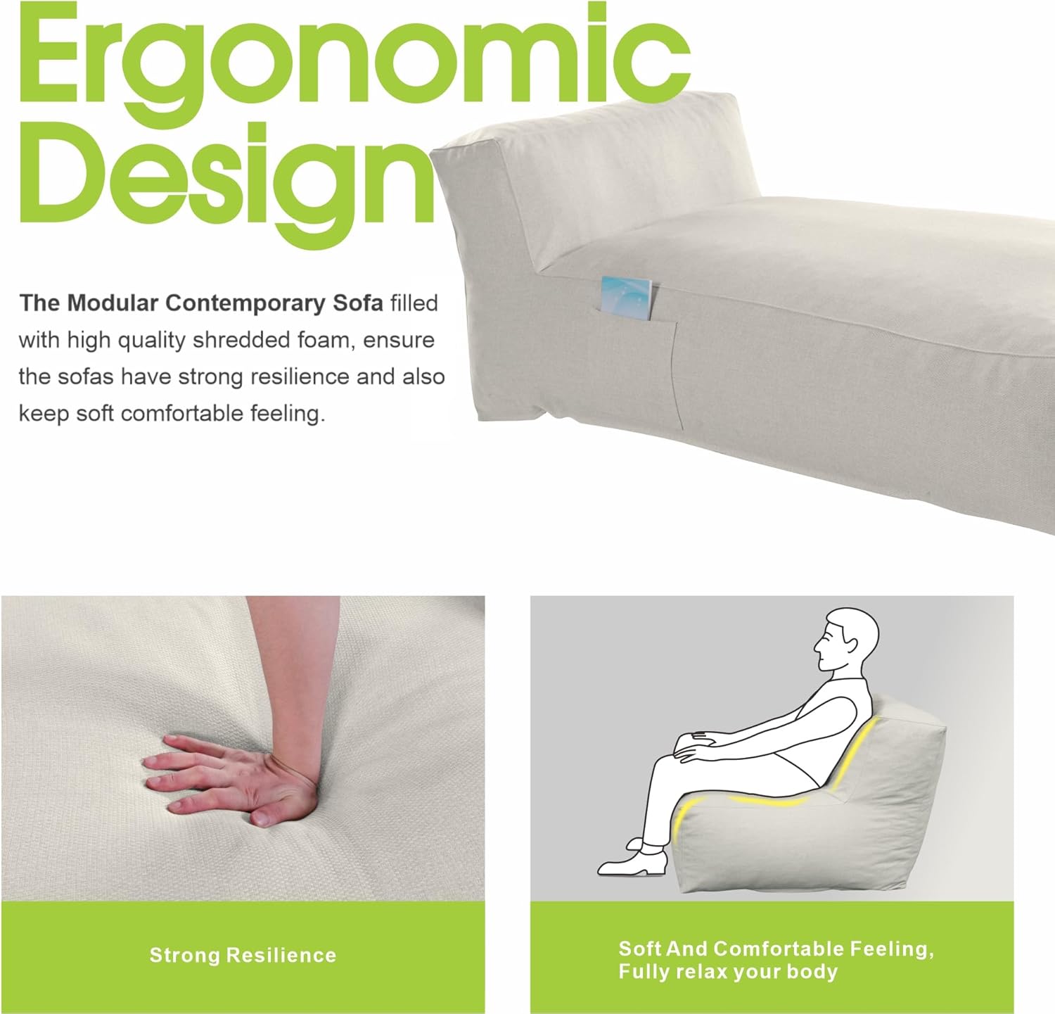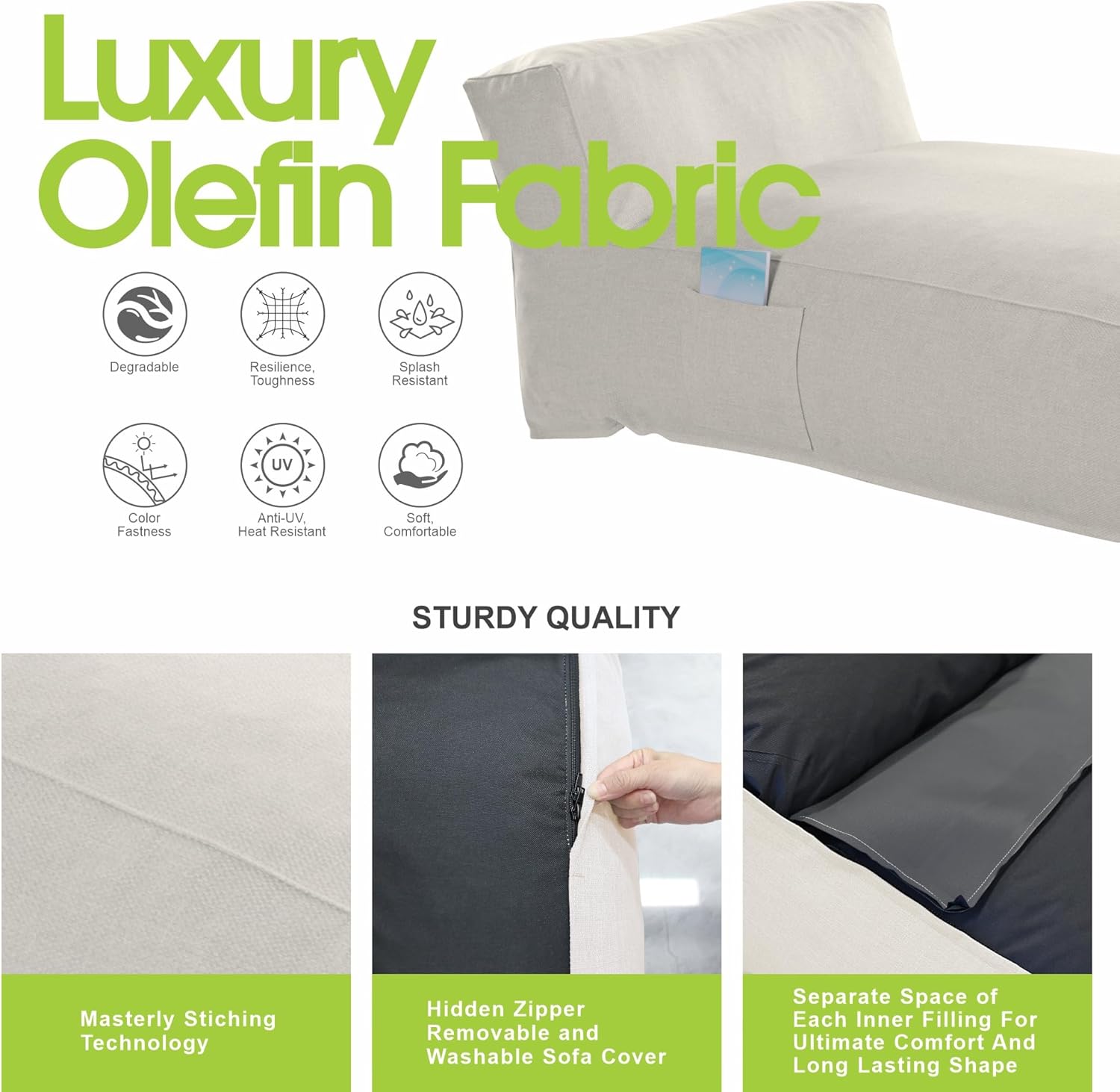Outdoor Bean Bag Lounger Chair, Big Comfy Outdoor Daybed for Sunbathing and Tanning - Water-Resistant Patio Chaise and Pool Sun Lounger Furniture for Beach Deck (Ivory)