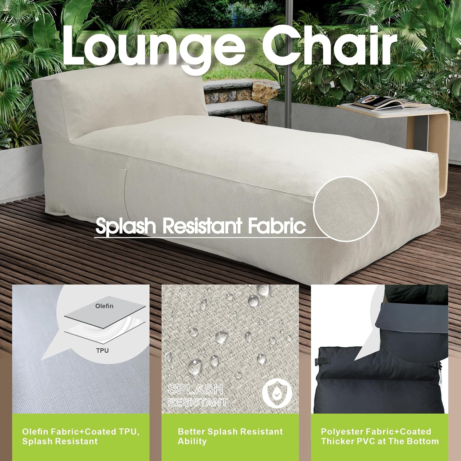 - Oversized Outdoor Bean Bag Lounger for Relaxation & Sunbathing - Stretch out and unwind with this large outdoor bean bag lounger chair, perfect for sunbathing, tanning, or poolside lounging. Designed with generous dimensions (70.87" L x 35.04" W), it functions as a patio daybed, chaise lounge, or outdoor futon, bringing resort-style comfort to your deck, yard, or beach house.