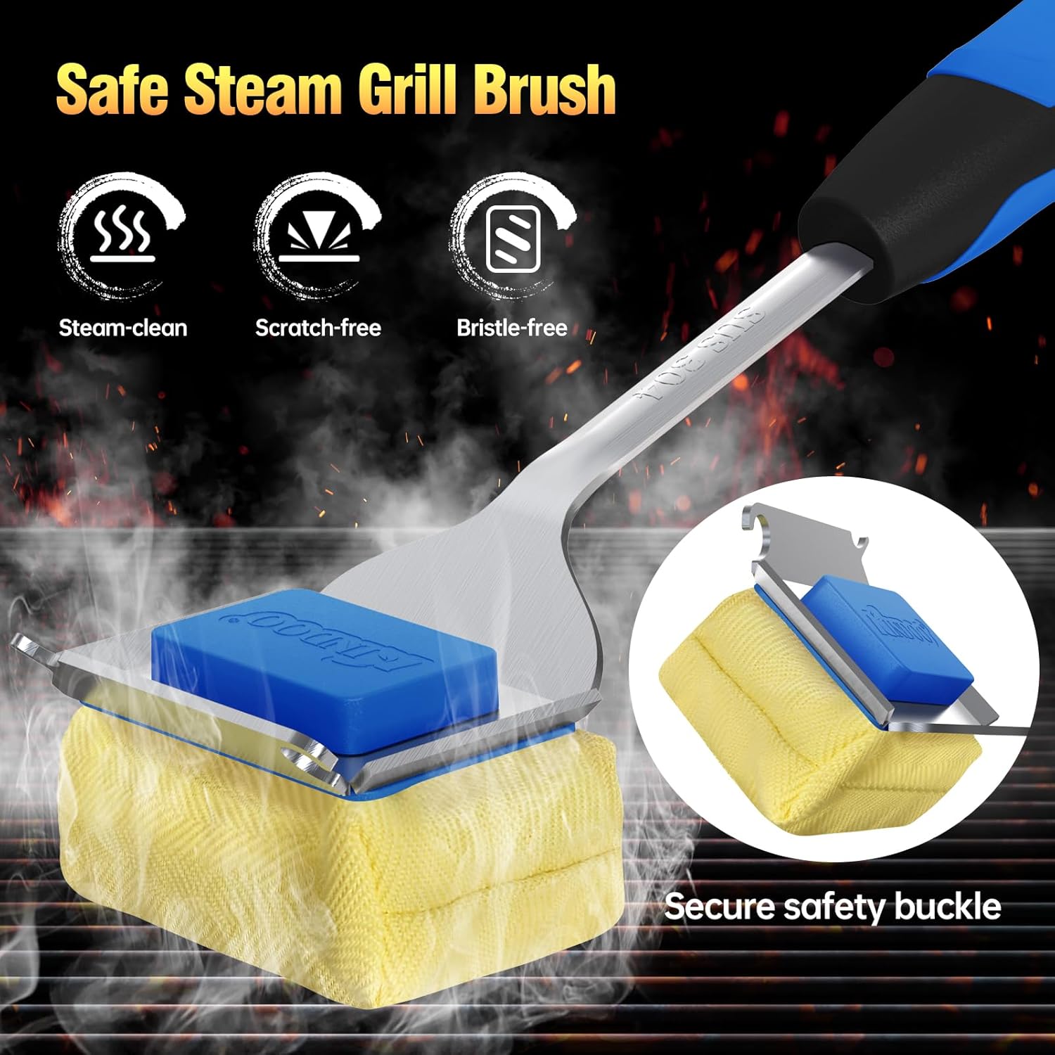 - 【Easy to Clean and Reusable】Preheat grill to over 400 degrees Fahrenheit and then turn off all burners for your safety.Then clean the grill after brush head soaking it in water, remove cold buildup on the grill with a stainless steel scraper, Use a sponge pad to scrub thoroughly. The powerful cleaning power of steam makes it easy to dissolve grease and stains