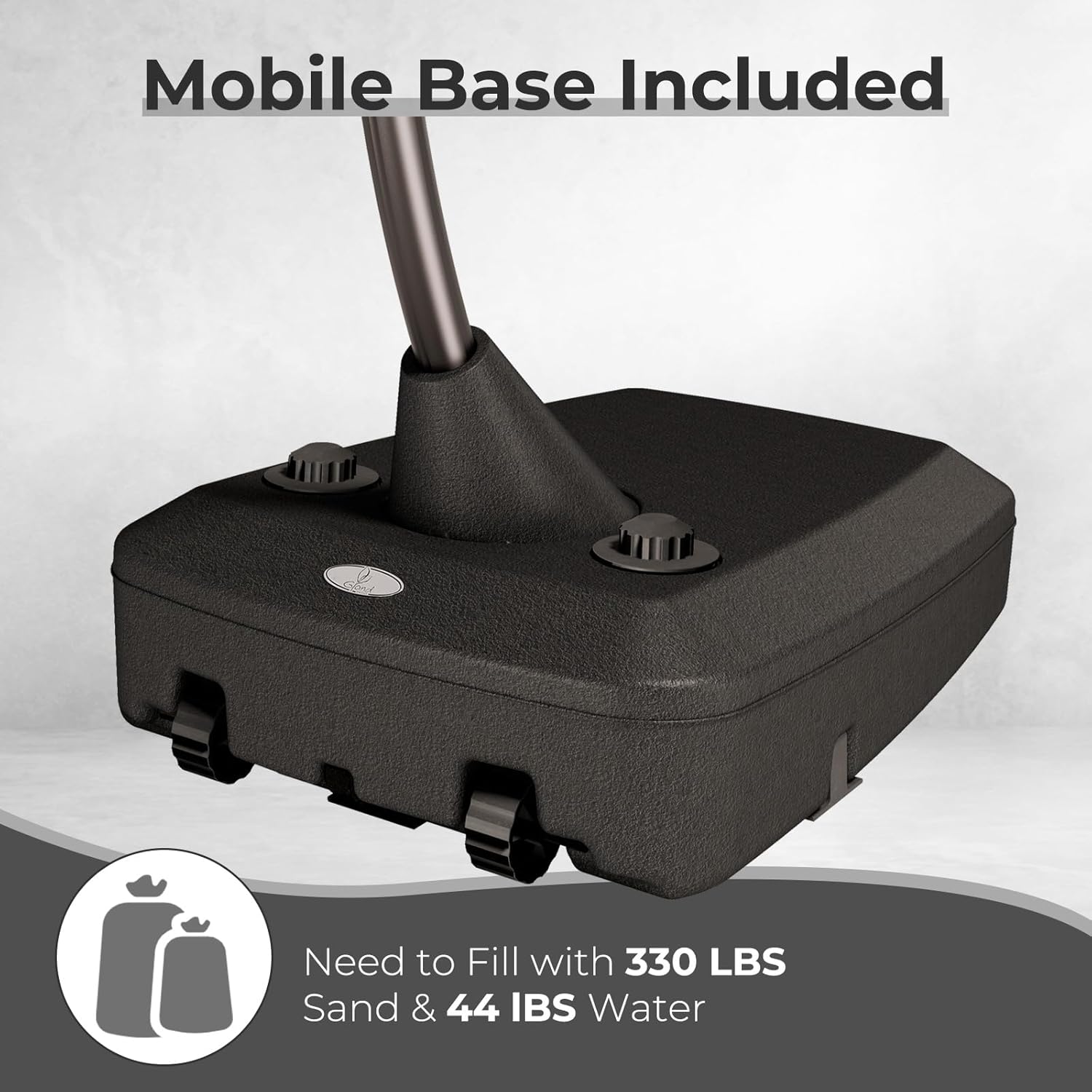 - Stable Wheeled Base Included: Equipped with built-in wheels for easy movement and hidden levelers for balance. Fill the base with 330 lbs of sand and 44 lbs of water (total 374 lbs) for strong wind resistance. Always close and lock when not in use or during bad weather.