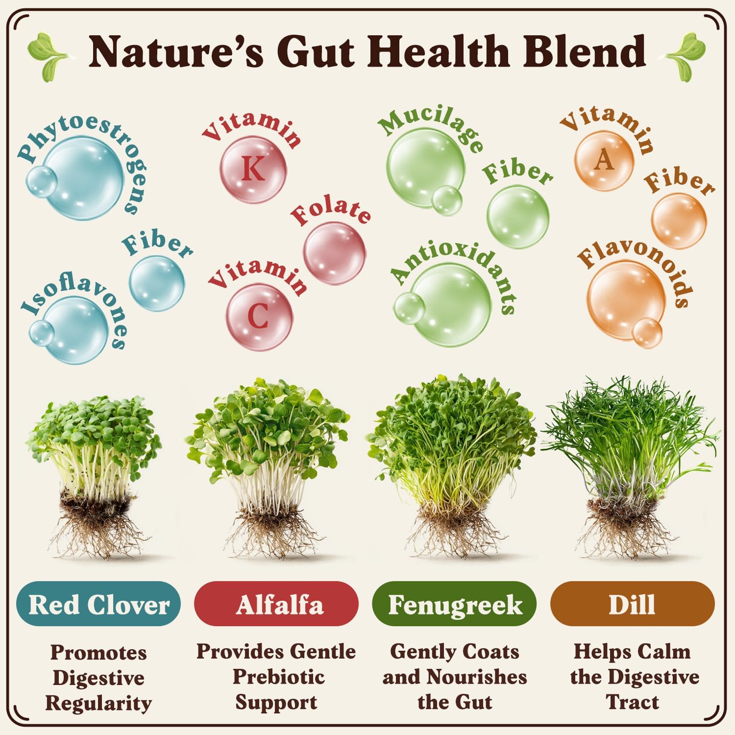- Sprouts or Microgreens—No Garden Needed - Grow crisp, fresh greens anywhere—whether in a tiny apartment, busy workspace, or on the go. Sprout our Organic Gut Health Blend in a jar for a crunchy, nutrient-rich addition to meals, or grow longer in a tray for heartier microgreens with bold flavor. Clover, Alfalfa, Fenugreek, and Dill for planting are ideal for health-conscious individuals seeking a quick, nutritious upgrade to smoothies, sandwiches, salads, and more..