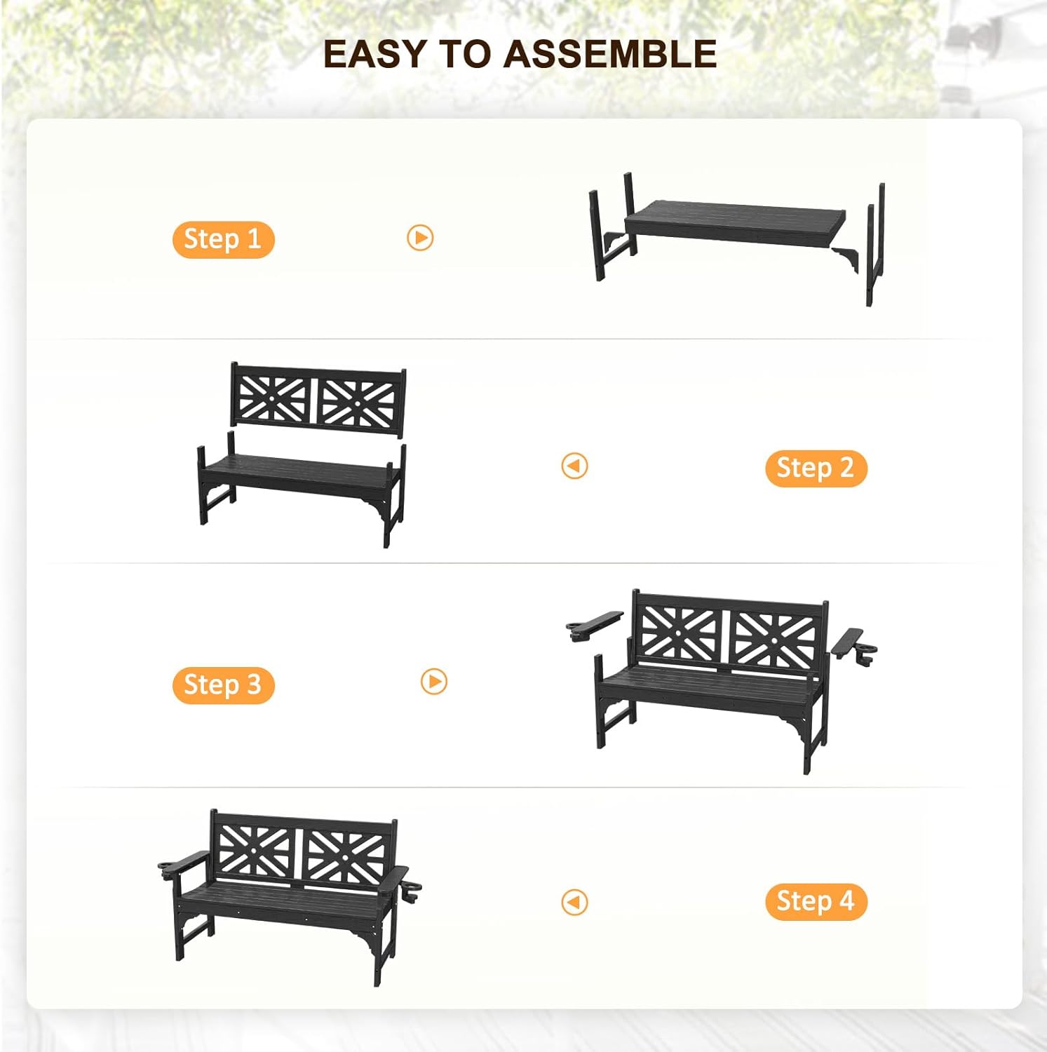 - Easy Assembly & Low Maintenance - With detailed instructions, this outdoor bench only takes 20 min to put together, and no additional tools are required. It is water and all-weather resistant, all you need to do is wipe it with a wet cloth. You can ask for a replacement part or for help at any time, a professional customer service team will reply to you within 24 hours. NALONE store also has other HDPE tables & chairs!