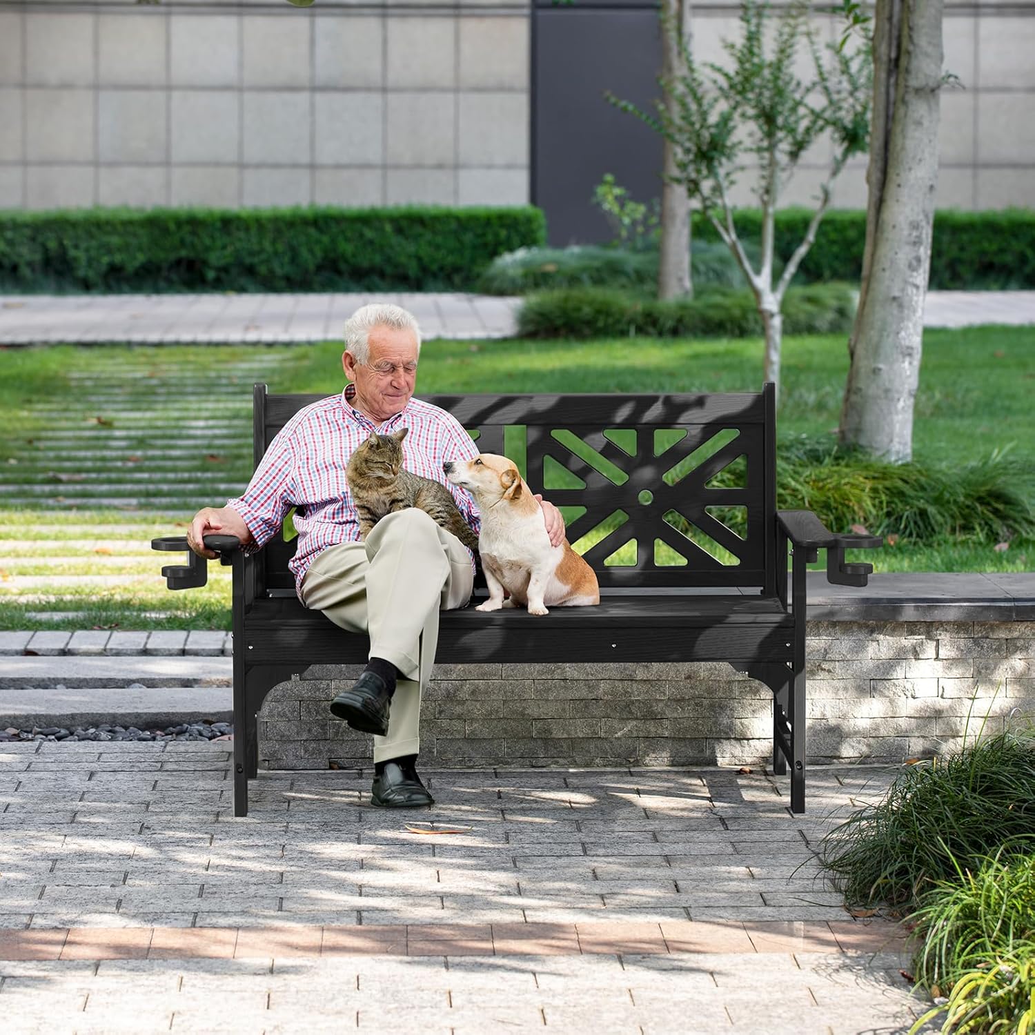 - Elegant Design & Wide Usage - The simple and elegant window grille backrest design makes our bench more stylish. This outdoor bench is the perfect match for any outdoor decor style. Its a nice addition to any garden, patio, front porch or outdoor space. A polished burr-free surface can also protect your hands from scratches.