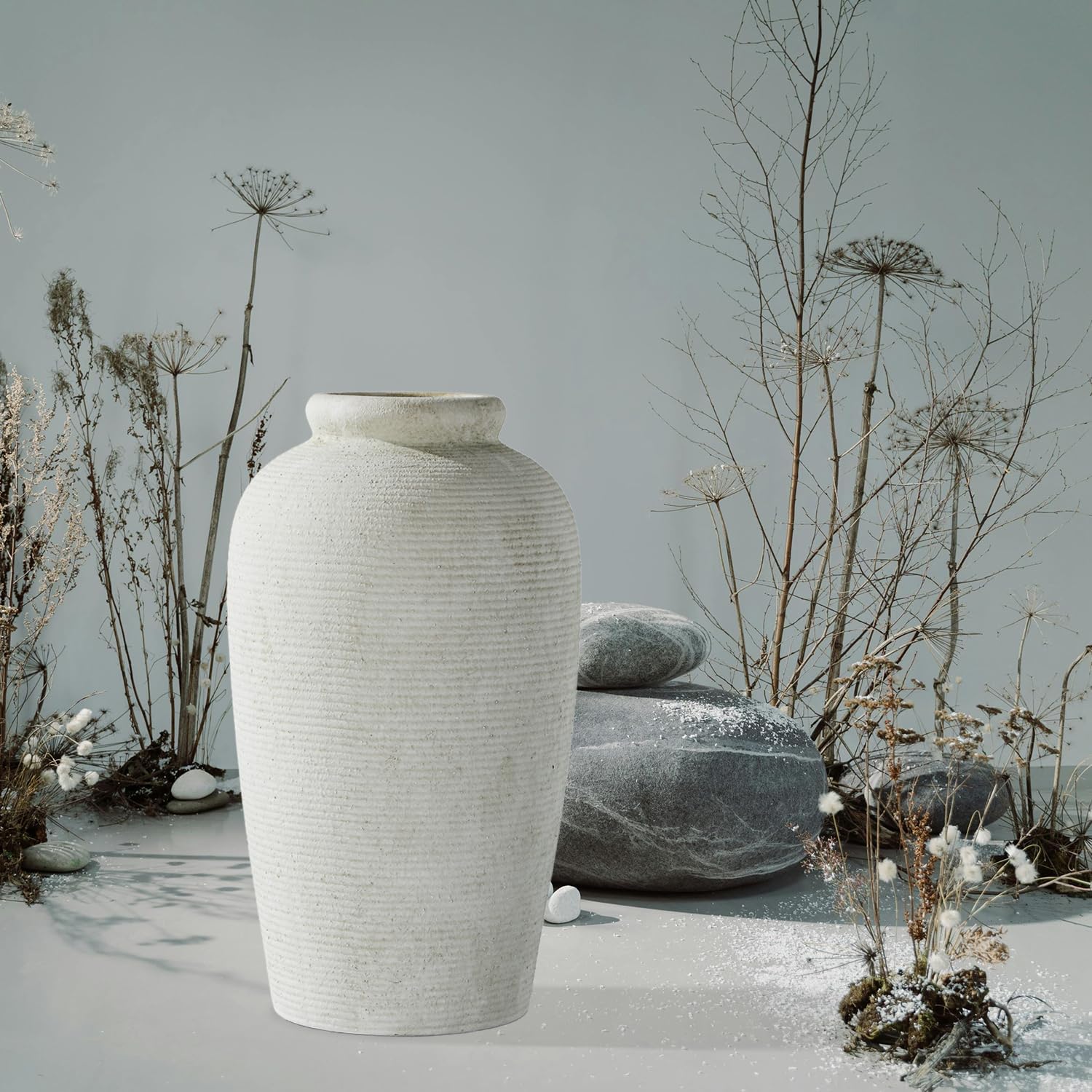 Decorative Ceramic Rustic vase,Tall vase for Minimalist Decoration,11" Large Vintage Vase for Home Decor,Centerpiece,Living Room,Enterway,White
