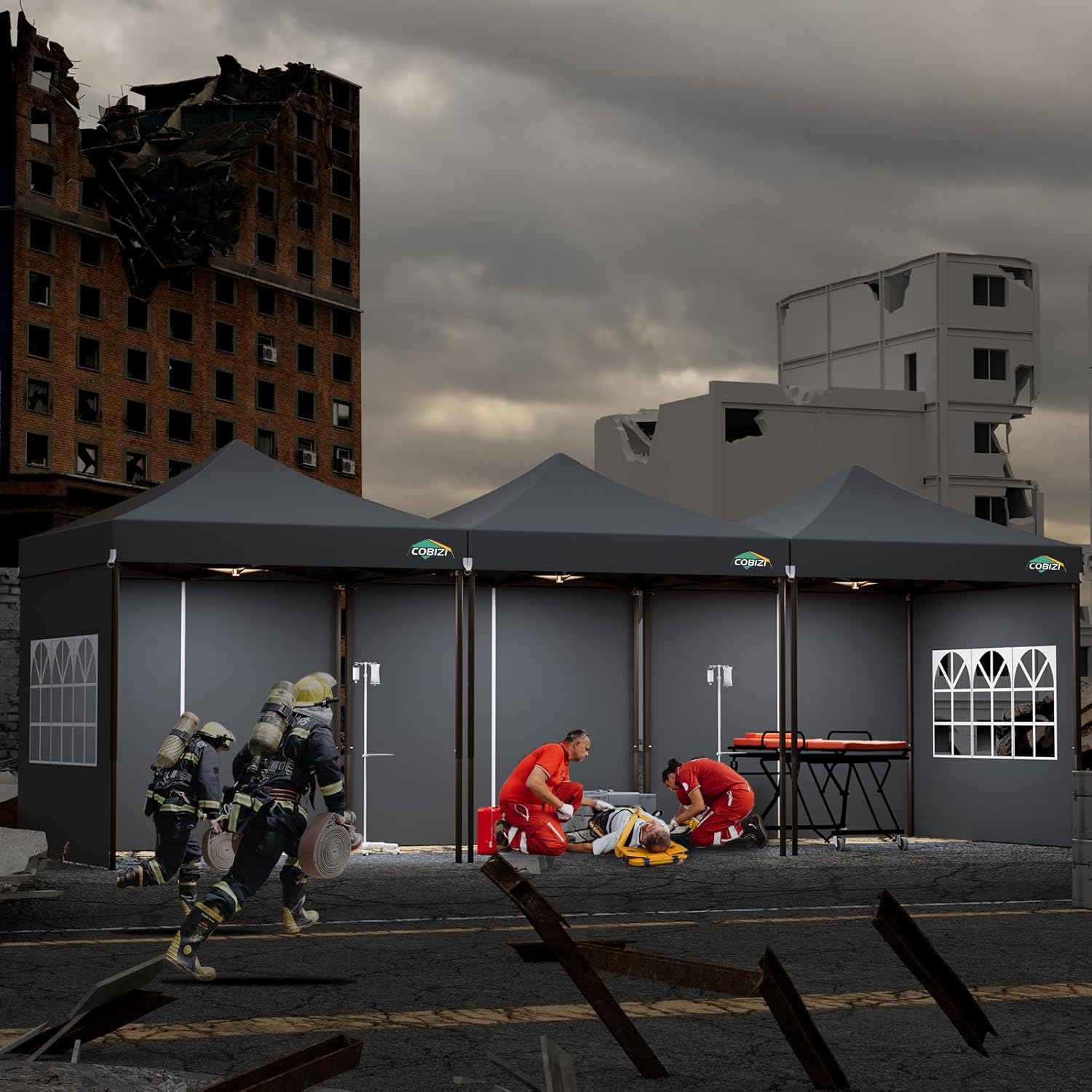 - [Upgrade Heavy Duty Canopy] The COBIZI 10x10 Heavy Duty Canopy features a commercial-grade full truss structure constructed from durable powder-coated stainless steel. The thickness of the 1.77 inch (45mm) hexagonal legs has been increased to 0.7mm/0.03 inches, providing superior stability and durability. Full truss design ensures exceptional sturdiness and rust resistance, capable of withstanding wind speeds of up to 30mph when properly secured with an number of ropes, and stakes.