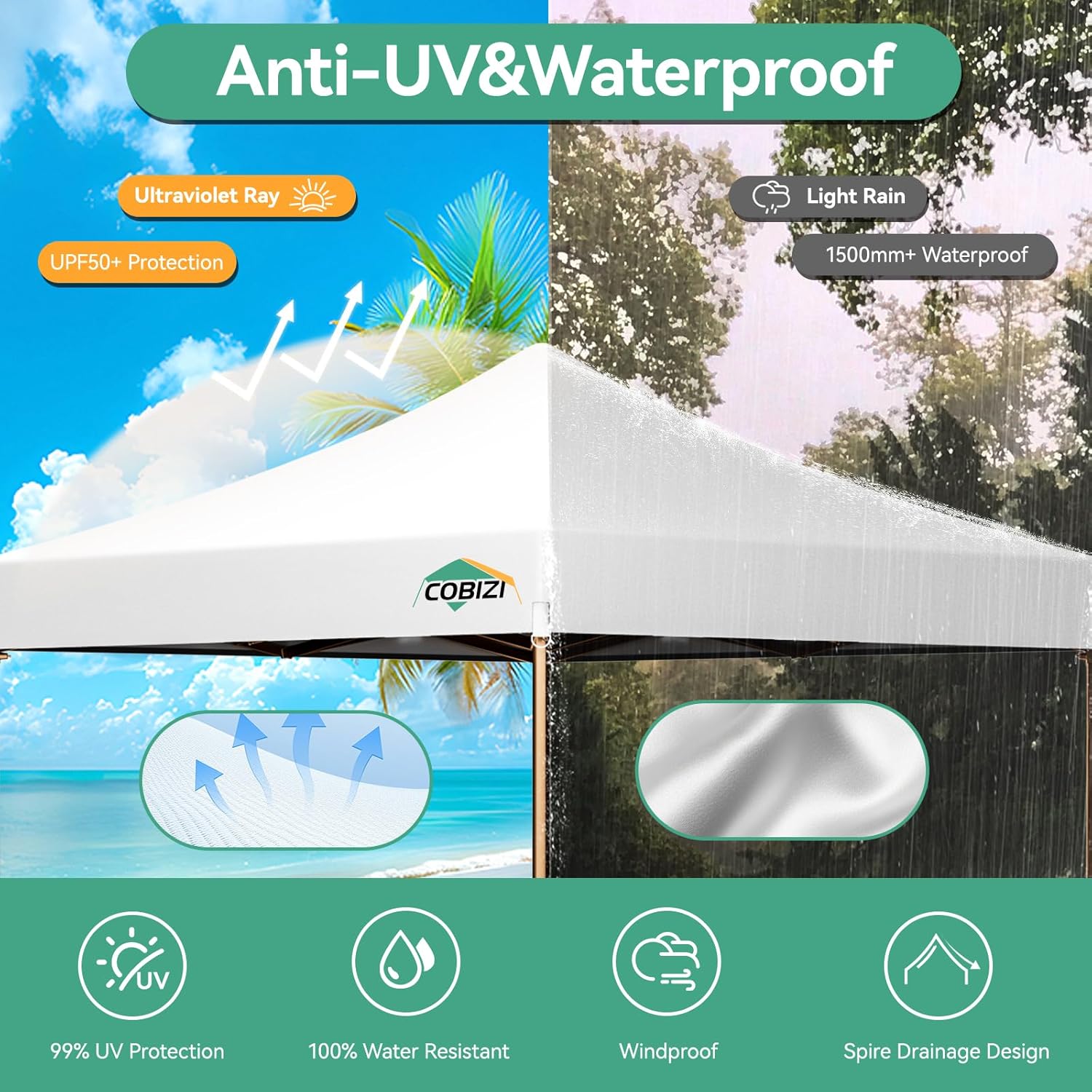 COBIZI 10x10 Pop Up Canopy Tent Heavy Duty with 4 Sidewall, Commercial Outdoor Easy Pop Up Gazebo for Party Wedding All Weather Waterproof UV 50+ with Carry Bag(Leg Upgraded),White