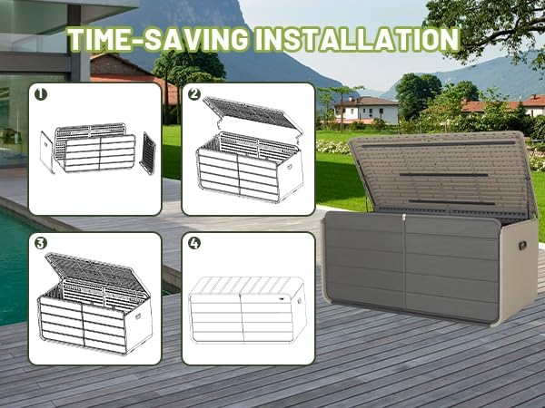 - Easy to Put Together: Get your deck box ready in half an hour enough with 2 people with our easy to follow instructions. Simply align the panels and connect them using fix buckle for a secure, easy to put together.