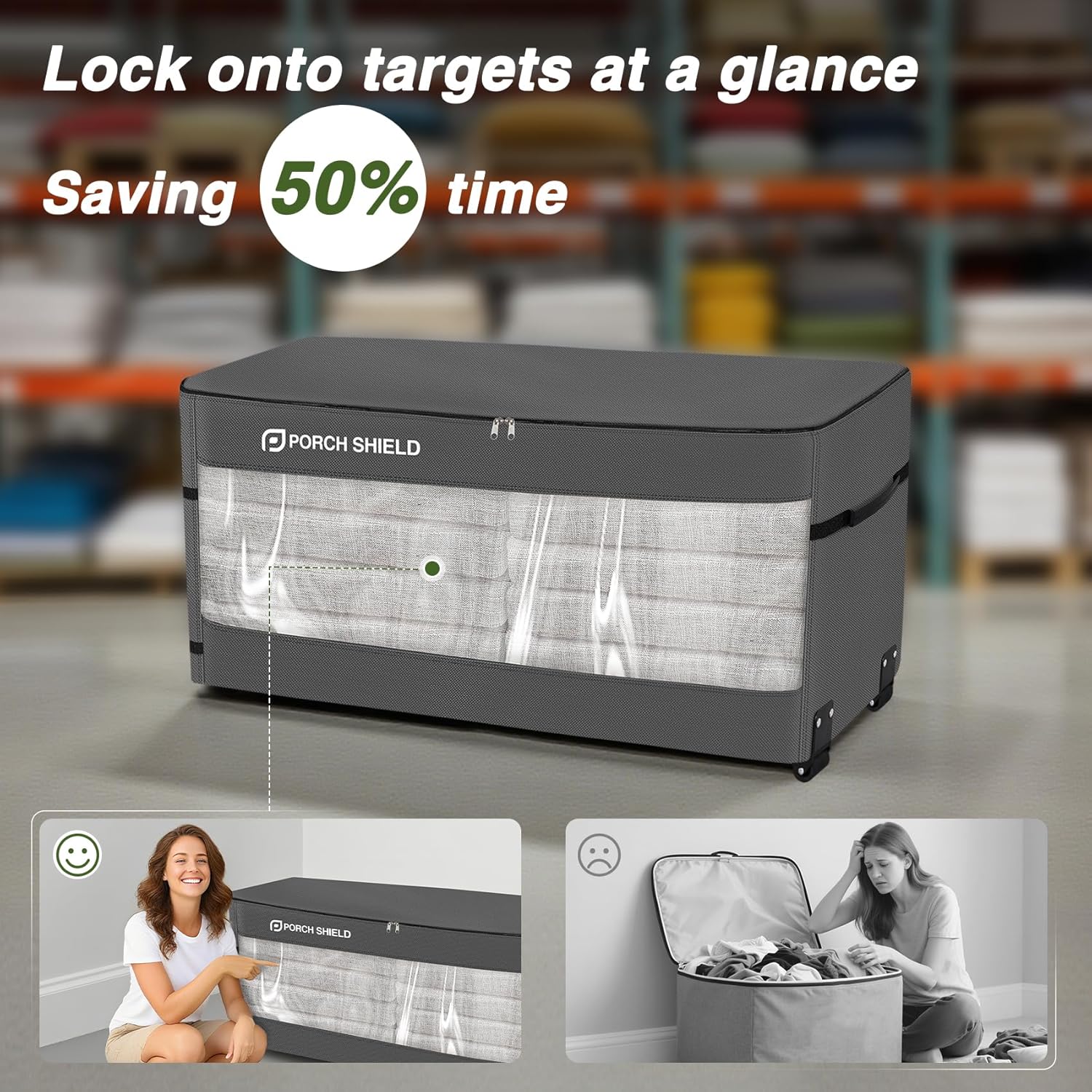 - 【Clear-View Window】 Dustproof cushion storage bag with wheel adopts clear-view window design, which helps you find things instantly from the outside of cushion storage bag.
