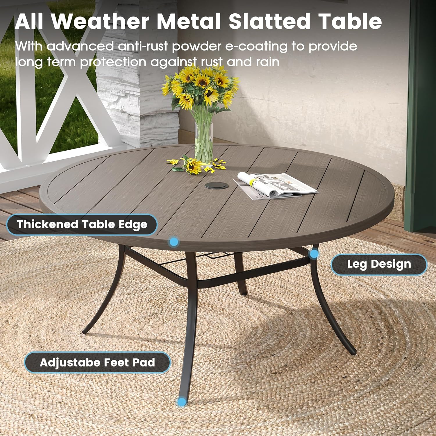 DIFY 50" Round Outdoor Patio Dining Table for 6, Metal Patio Table with 1.57" Adjustable Umbrella Hole, All-Weather Dining Furniture Table for Backyard Lawn Garden, Grey Wood-Like