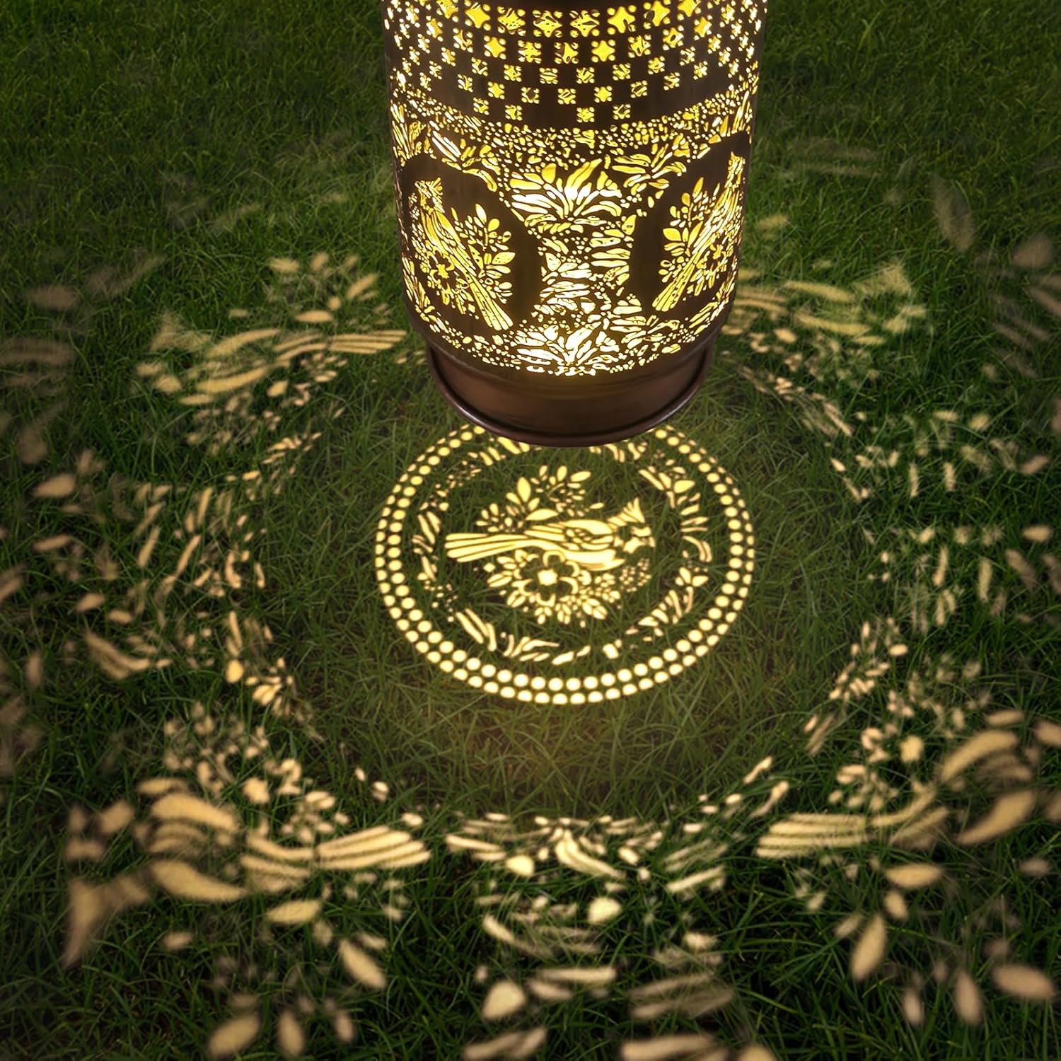 - Elegant Tai Ping Bird Design – This stunning solar lantern features intricate Tai Ping bird patterns that cast beautiful floral shadows when illuminated, creating a tranquil and decorative atmosphere in your garden, patio, or outdoor space.