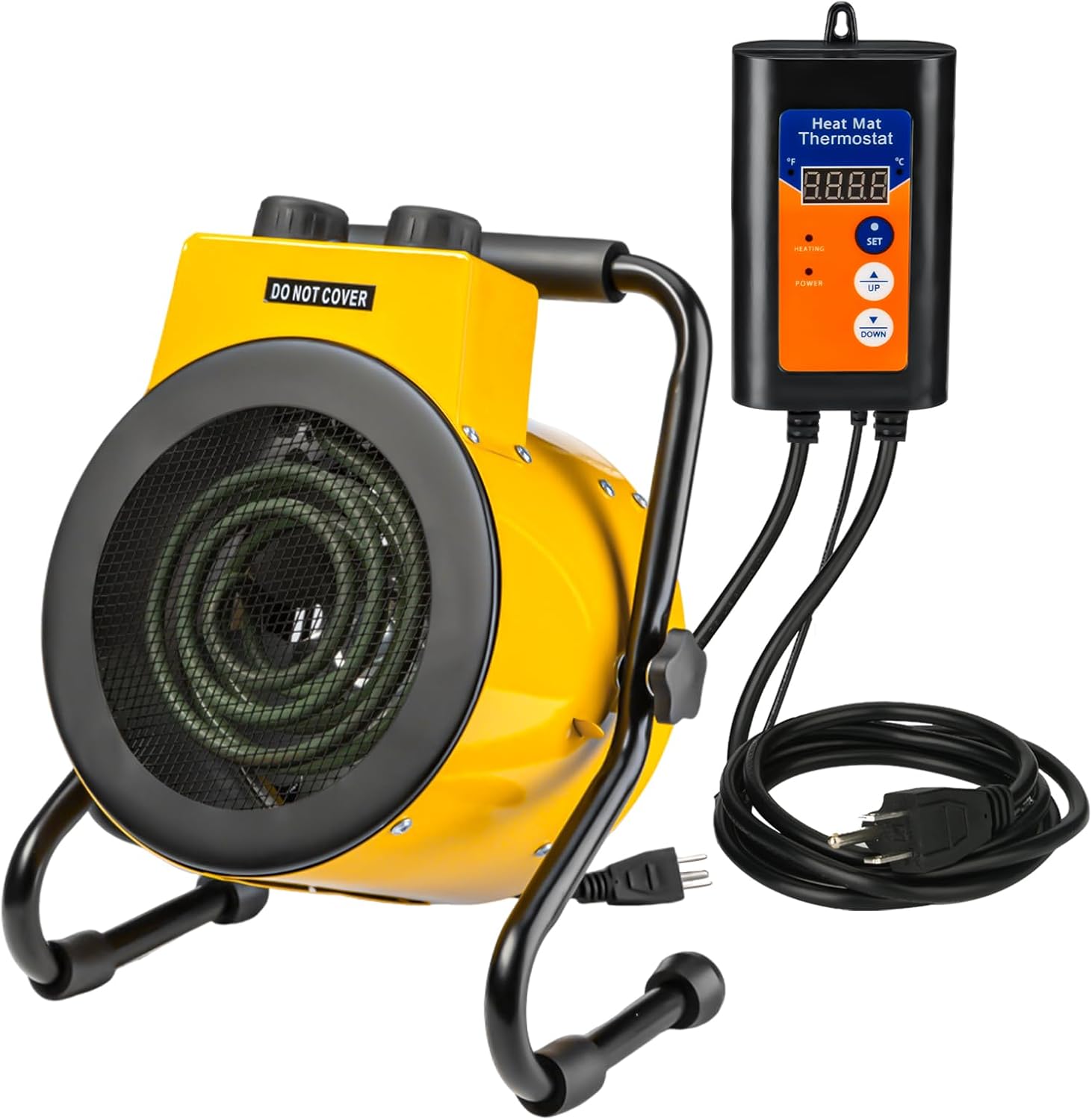 - DIGITAL THERMOSTAT: The electric greenhouse heater features a digital thermostat for precise, energy-efficient temperature control, fostering optimal plant growth. With an adjustable range of 40℉-108℉ (5℃-42℃), it automatically shuts off if the temperature exceeds the set point by 1°C.