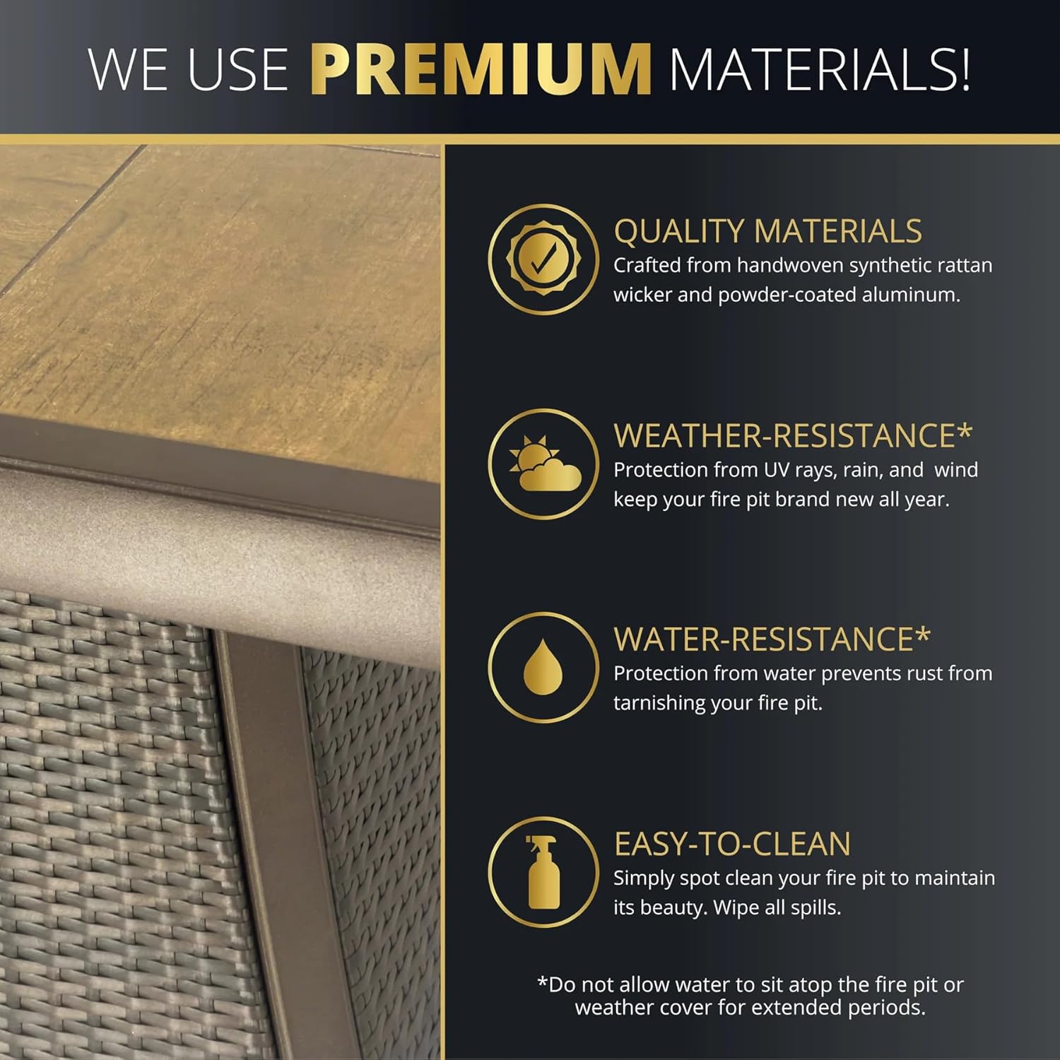 - 【Premium 42" Propane Fire Pit Table】Elevate your patio with this spacious 42-inch outdoor fire pit centerpiece. Crafted from handwoven synthetic rattan wicker & powder-coated aluminum frame for lasting style and weather/rust/fade resistance