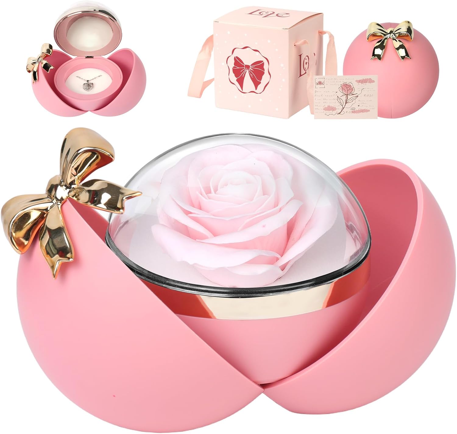 - 【BACKED BY OUR 100% PROMISE】Gift Package & After-Sale Service: Preserved roses and love necklace are well wrapped in the gift box, so that you could give directly without spend time on package. As an exquisite luxury gift, it can also store other jewelry. The necklace can be worn, and the rose box can be placed indoors as an ornament. If there is any problem with our product, don’t hesitate to contact us as soon as possible