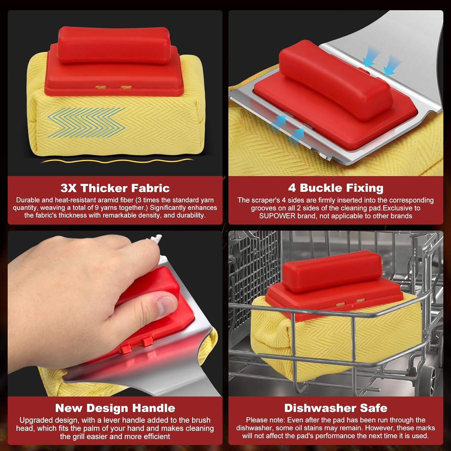 - SUPOWER Exclusive 4-Buckle Fixing: Experience ultimate stability. The scraper locks securely into all 4 sides of the cleaning pad using our unique buckle system (exclusive to SUPOWER), ensuring it stays firmly in place during vigorous cleaning.