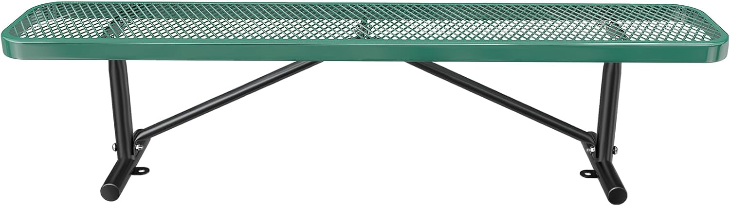 Thermoplastic Coated Iron Park Bench for Outside, Heavy Duty Metal Garden Bench, Expanded Commercial Grade Seating for Shopping Malls, Lawn Yard Porch Entryway (Green without Backrest, 72IN)