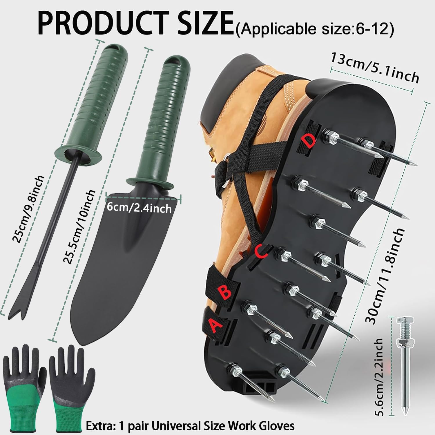 Lawn Aerator Shoes, Spike Shoes for Self Levelling Floor, Heavy Duty Long Spiked Aerating Sandals for Yard Patio Garden Grass Lawn, with Gardening Gloves/ Stainless Steel Shovels Clearing Away Debris