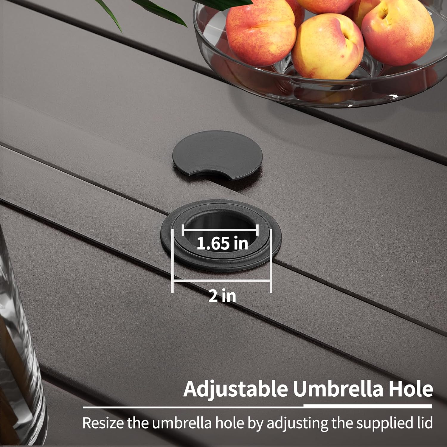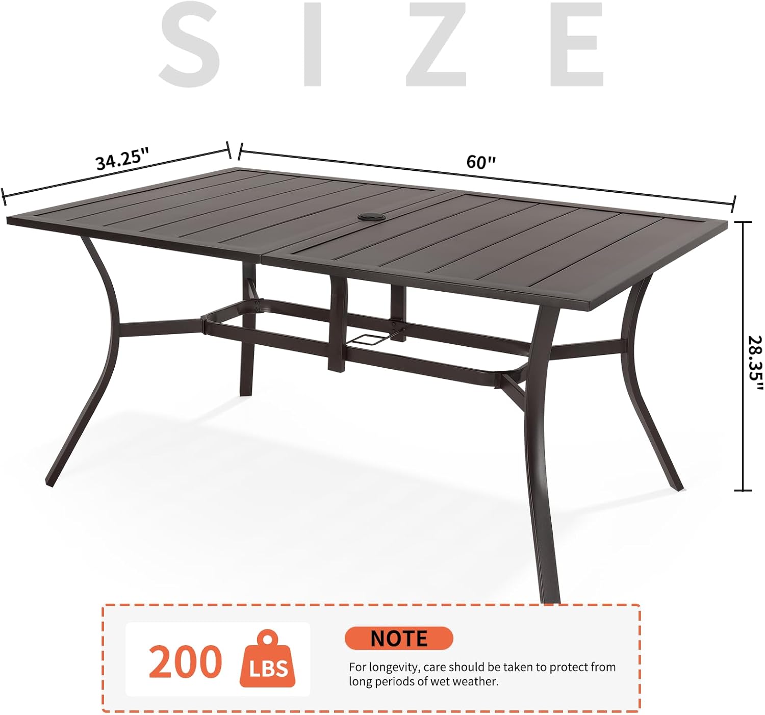Outdoor Metal Steel Rectangle Patio Dining Table, 6 Person Patio Table with Adjustable Umbrella Hole, Weather-Resistant for Garden Backyard Porch, Dark Brown