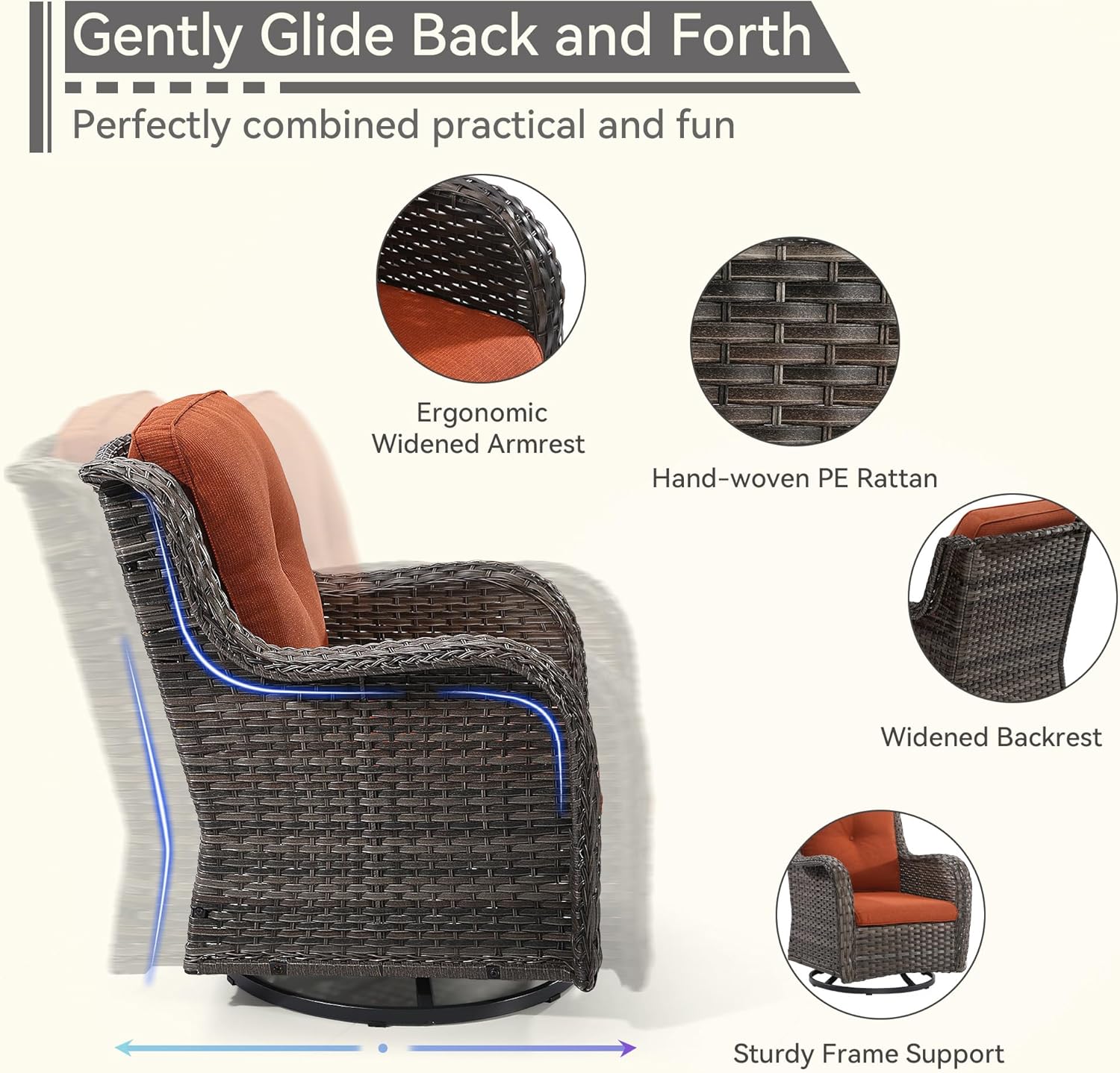 3 Pieces Outdoor Furniture Set - Patio Wicker Swivel Rocker Chair Set of 2 and 1 Side Table, Orange, Mixed Brown Rattan, Suitable for Porch, Yard