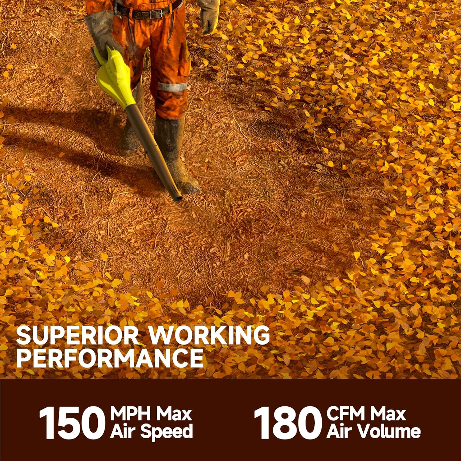 - POWERFUL EFFICIENT CLEANER: Pulituo cordless leaf blower makes yard work effortless with no need for gas or cords. The battery blower's 17,000 RPM copper motor delivers stronger, faster performance. Compact and lightweight design features advanced turbo tech for max airflow, reaching 150 MPH blowing speed and 180 CFM air volume.