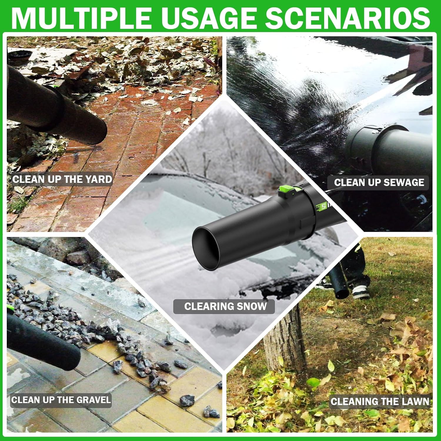 - 【Upgrade to 2x6.0Ah Batteries】:Sihuird Cordless Leaf Blower Equipped with 2x6.0Ah batteries and a fast charger, In daily life, the average usage time of 2x6000mAh batteries can reach 60 minutes, and even at maximum wind speed, they can last for 40 minutes, solving the problem of time anxiety.
