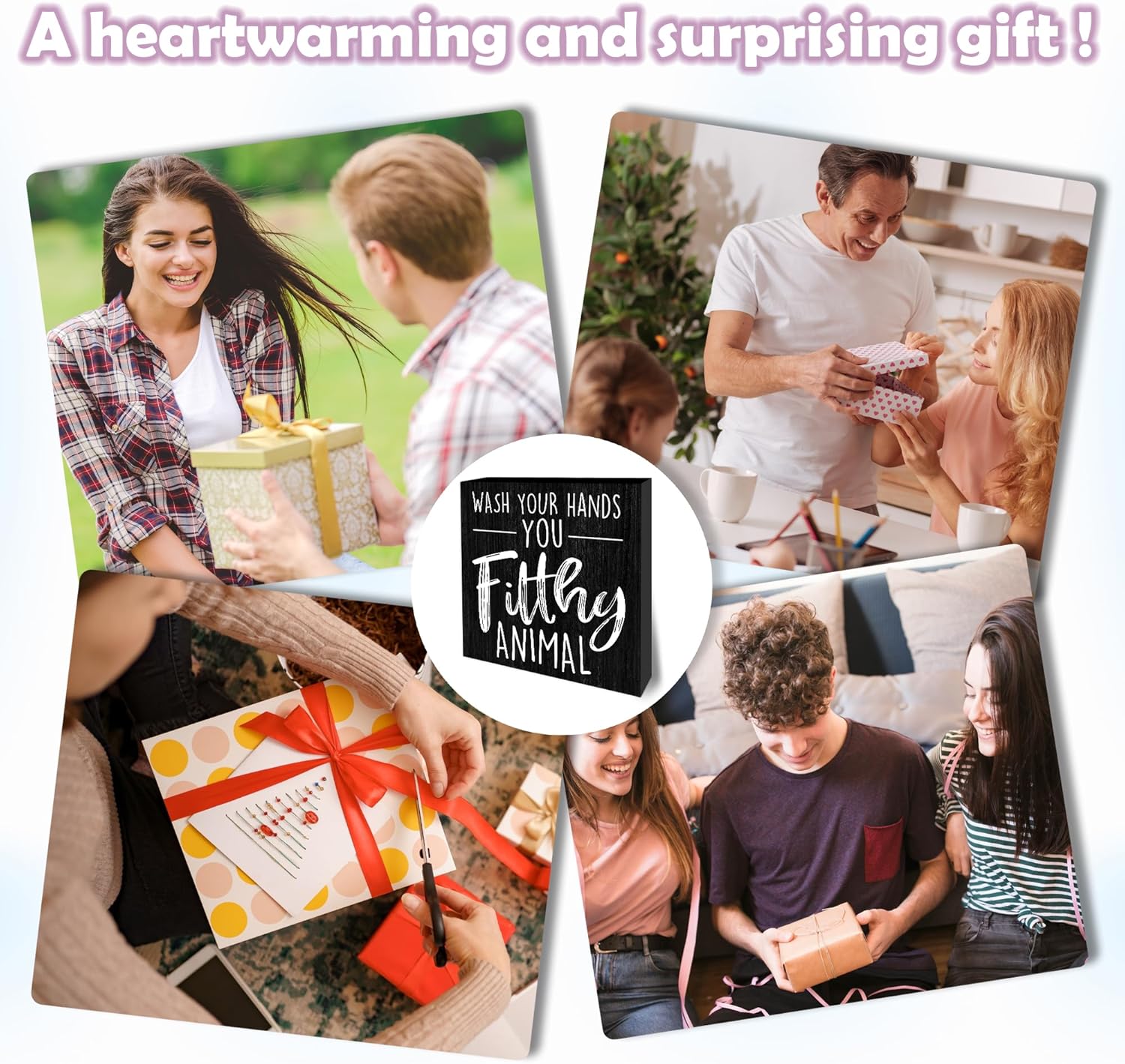 Wash Your Hands You Filthy Animal Wooden Block Sign - 5" Funny Wooden Plaque Tabletop Decor - Rustic Farmhouse Wood Sign Gifts For Friends Family Coworker - Bathroom Toilets Desk Decor & Supplies -B08