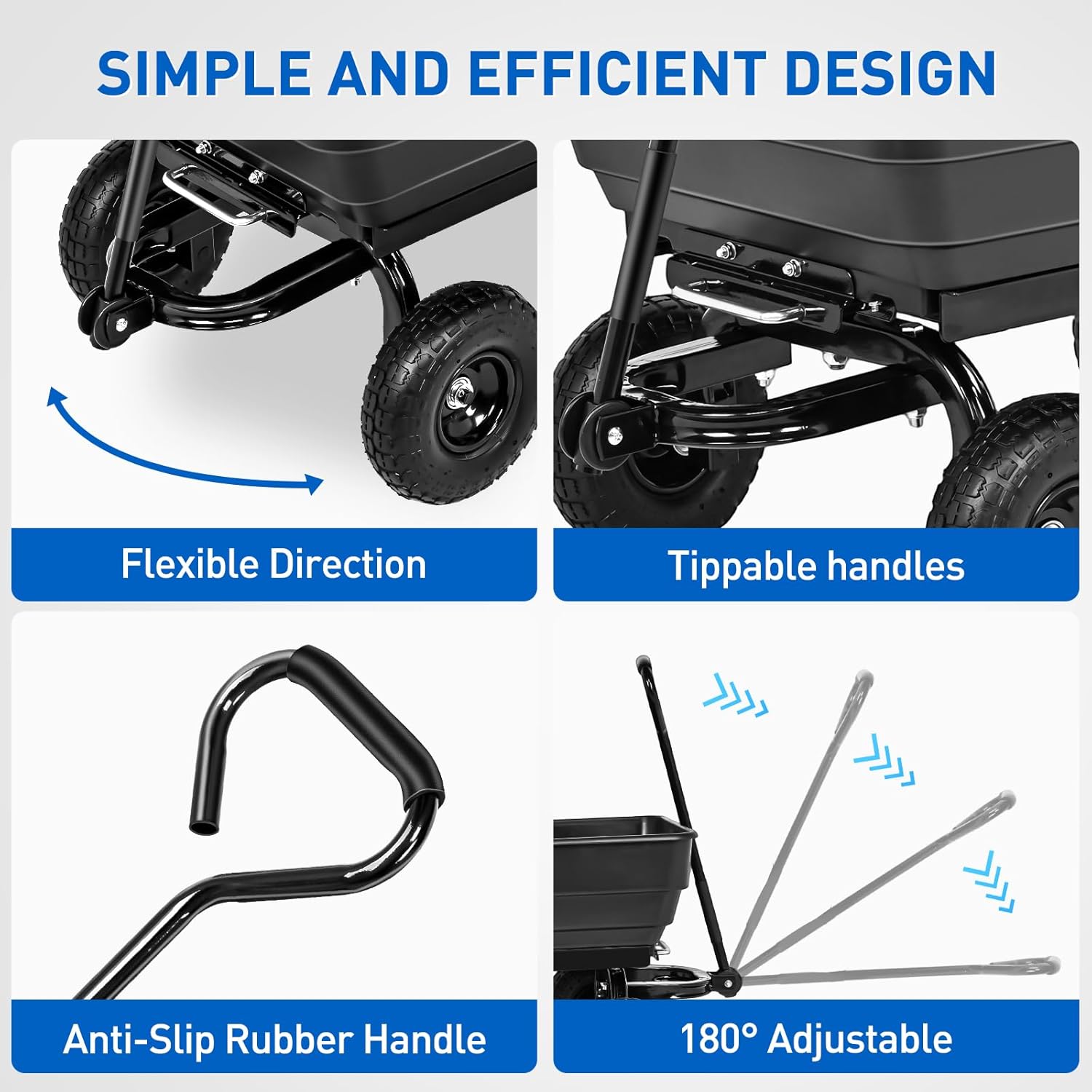 - 900LB Heavy-Duty Capacity – Built with strong steel frame and rust-resistant paint, this cart holds up to 900 lbs (6.7 cu. ft.) for tough outdoor jobs