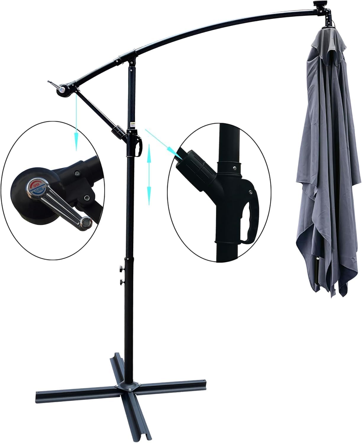 - ✅ HIGH DURABILITY: Crafted from 180G polyester fabric, this 10x6.5ft offset patio umbrella ensures fade resistance, waterproofing, UV protection, and easy cleaning. The 1.9" diameter rust-resistant pole, 6 sturdy steel ribs and cross base, with a powder-coated finish, can withstand winds up to 20 mph. The vented top design increases stability and keeps the area cool, making this cantilever umbrella ideal for long-term outdoor use.