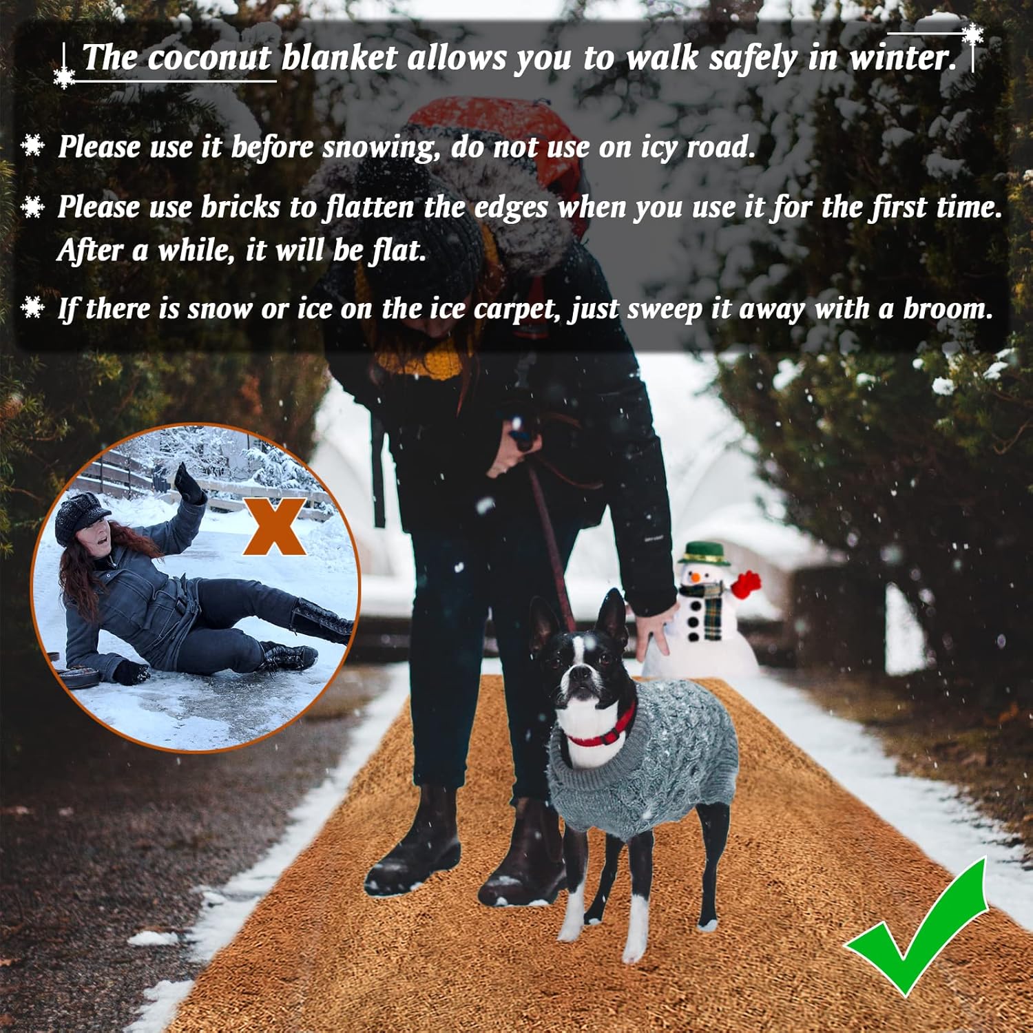 - 🌴【Material】: The coco mat runner is made of natural coconut fiber, durable and non-slip. As to they can adhere firmly to the moisture in the snow and ice in a low environment, you can rest assuranced when your families, your pet and yourself walking on it. The effect of non-slip is good in the snow and ice weather