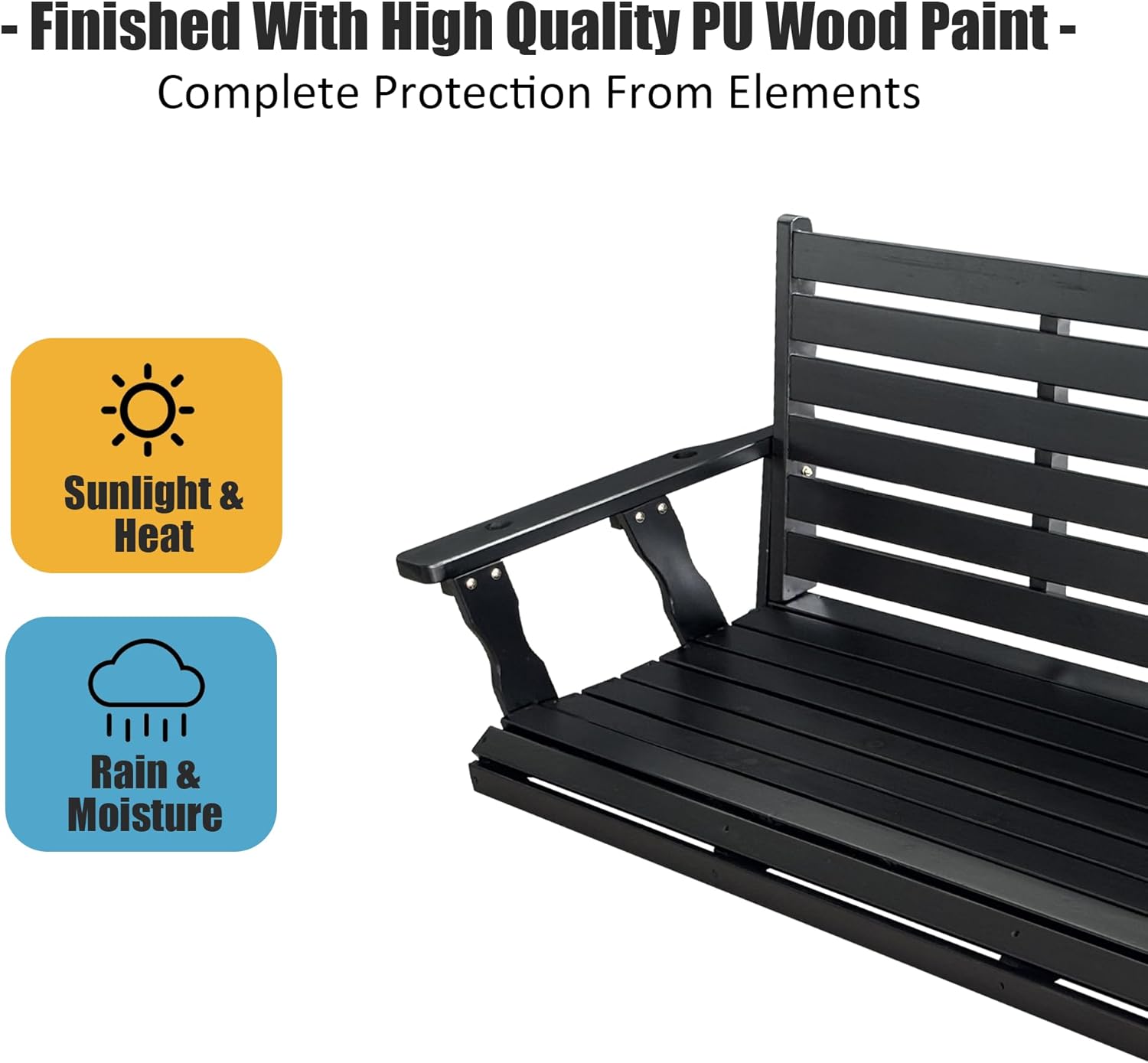 Wooden Porch Swing, Ergonomic Seat, Bench Swing with Hanging Chains and 7mm Springs, Heavy Duty 880 LBS, for Outdoor Patio Garden Yard (Matte Black, 3-Seater Extra Large)