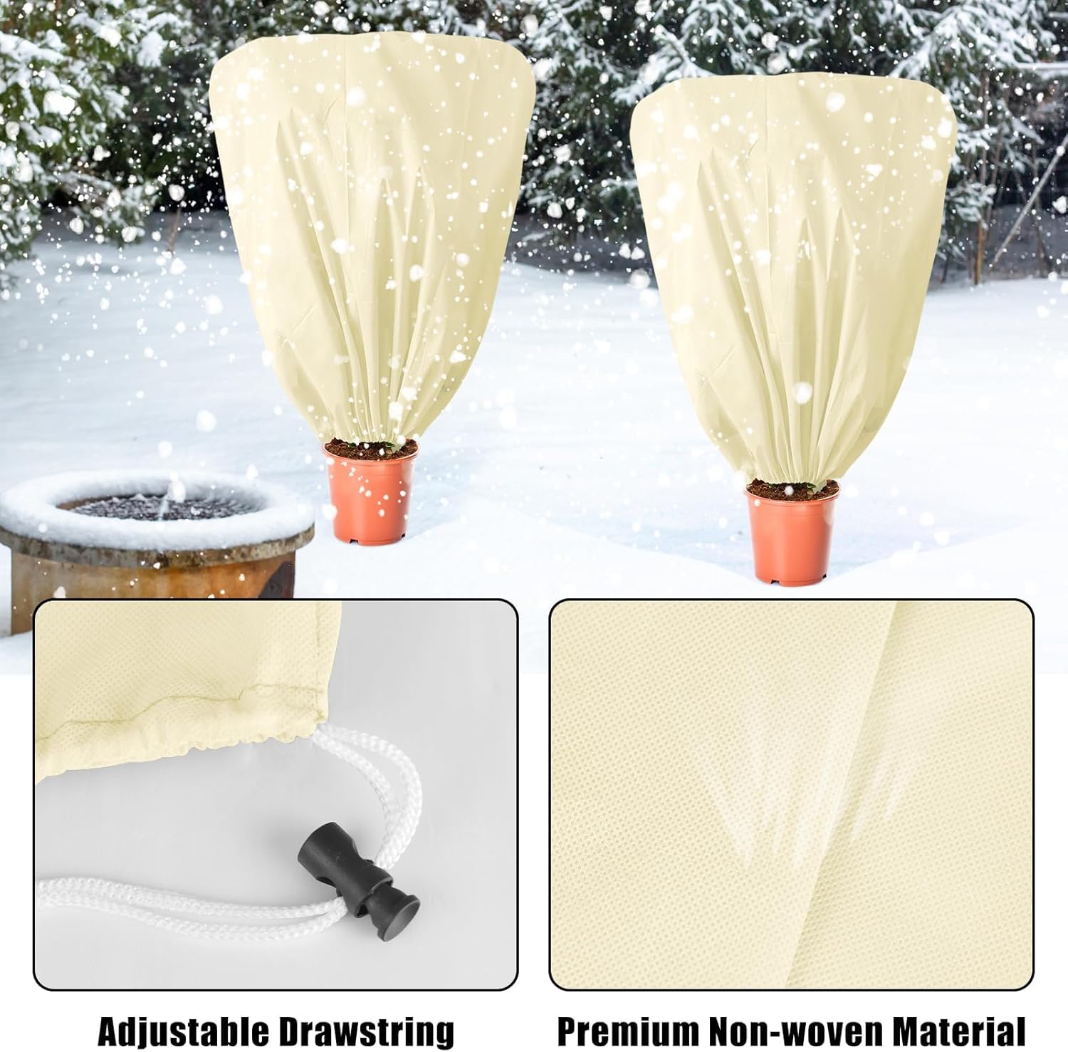 - Multiple Uses: Plant protectors are ideal for protecting outdoor plants in winter,such as barrel planters,saplings and small to medium-sized potted plants, most of fruit trees, tomatoes plants, shrubs and more from autumn and winter frosts, hail, freezing and snow, as well as birds and other food animals during the cold season