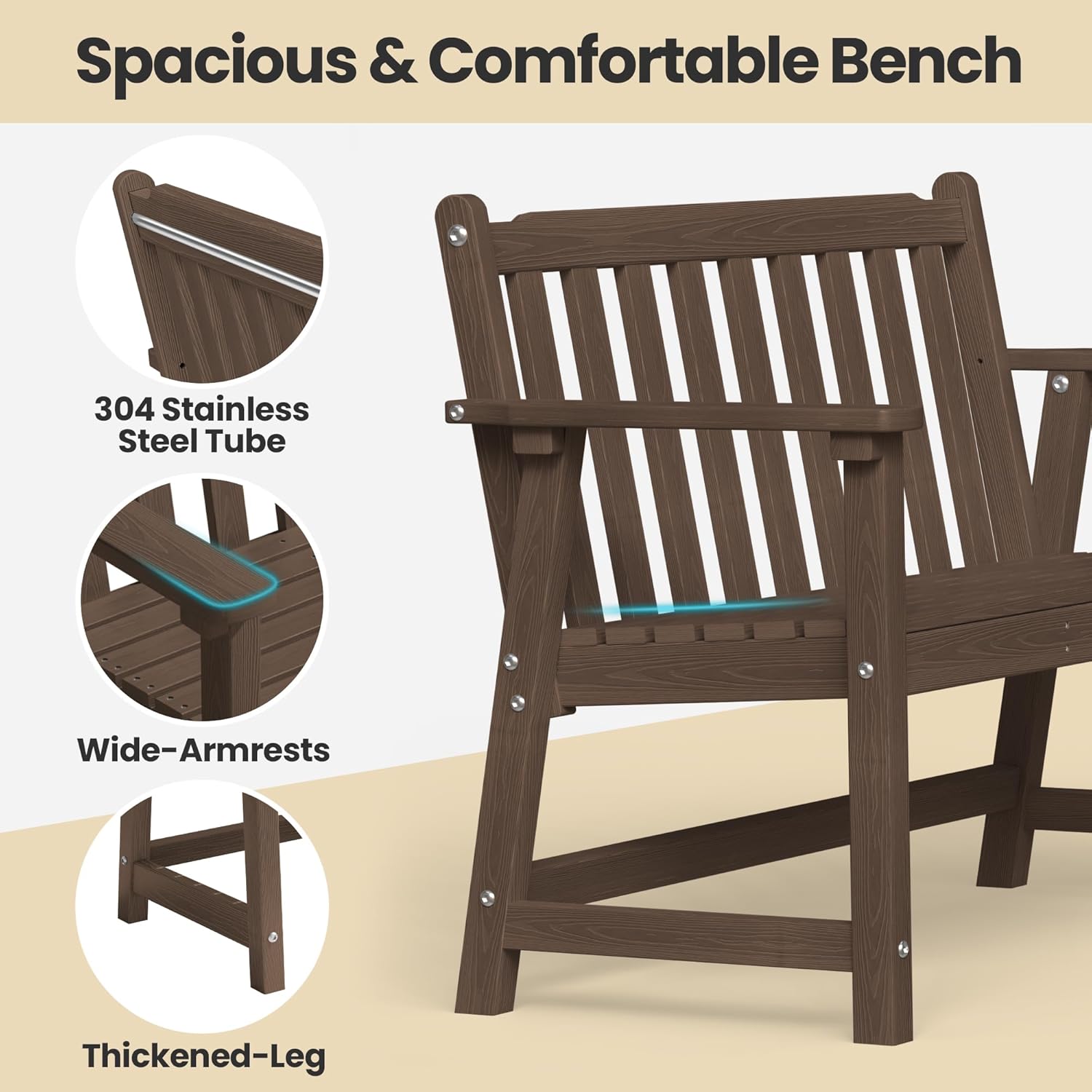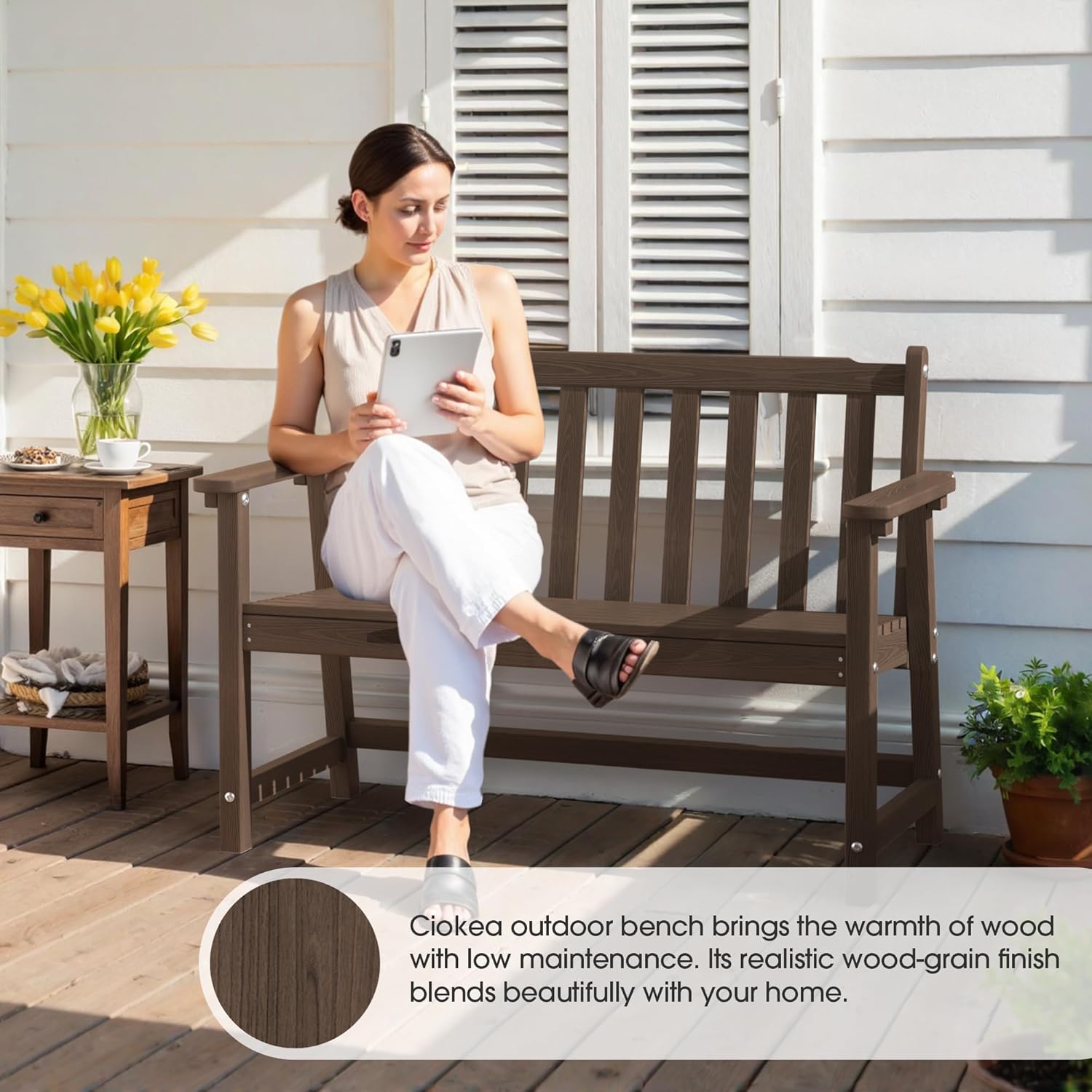 Ciokea 44" Outdoor Bench, HDPE Weatherproof Garden Bench, 2-Person Porch Benches with 550 Lbs, Waterproof Patio Benches for Outside Balcony Deck Backyard, Brown