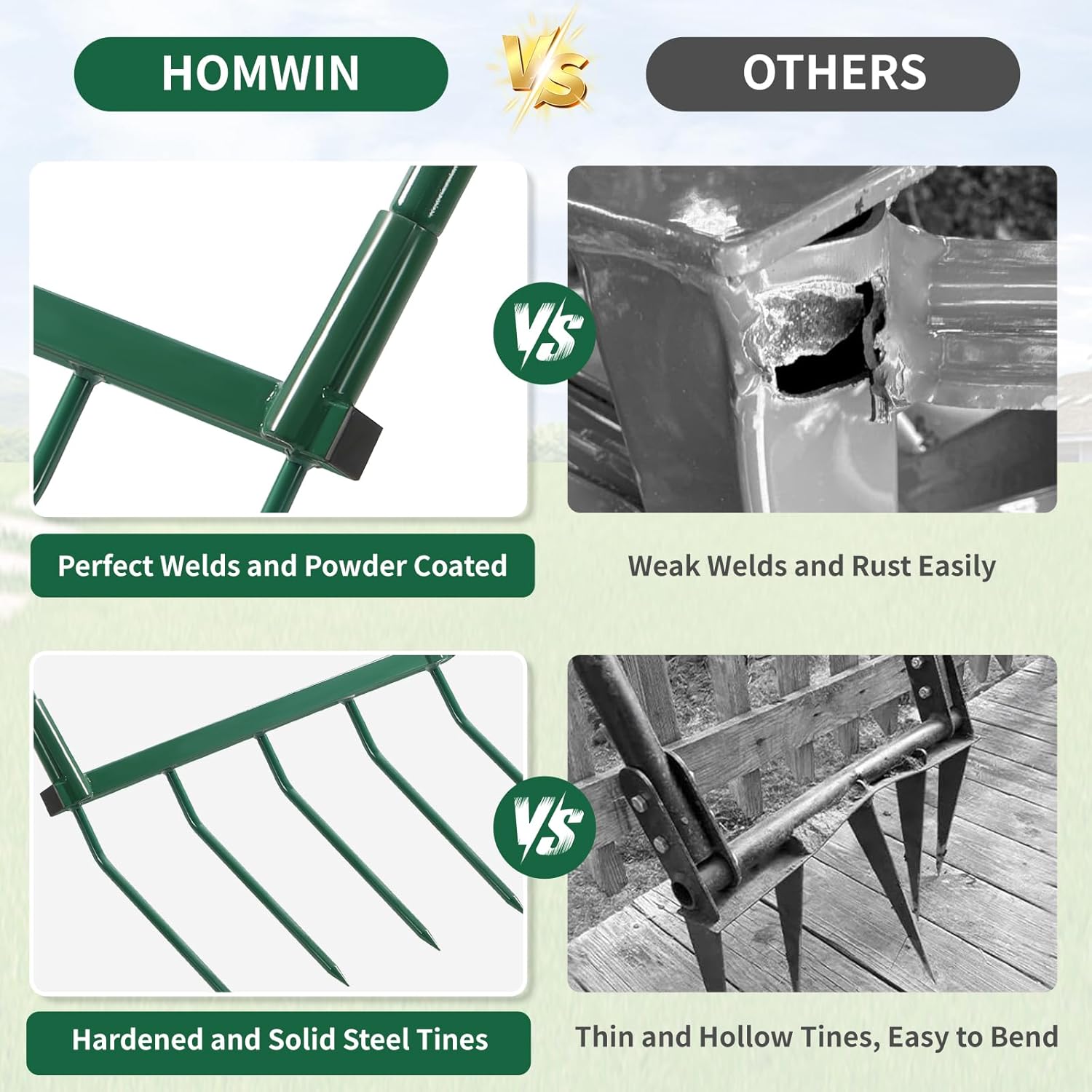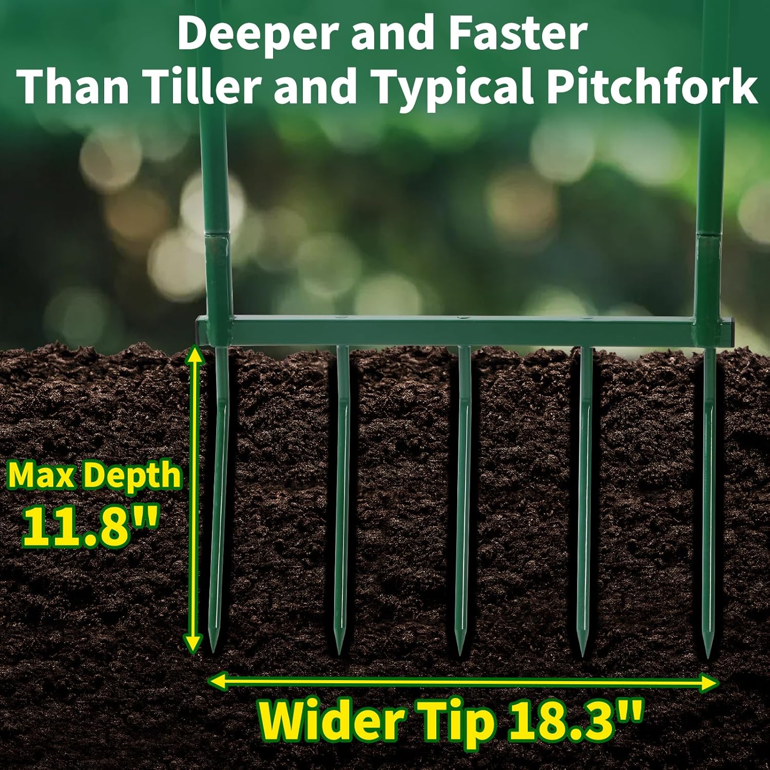 - 【Efficient Soil Aeration】 The broadfork goes deeper than the tiller and does not create compacted soil at the bottom of the tilled area. It's perfect for loosening and aerating compacted soil, improving drainage and preparing garden beds for planting.