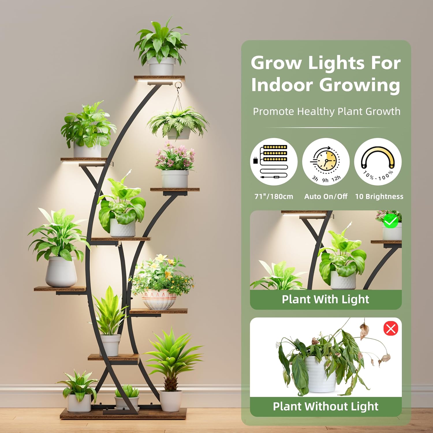Plant Stand Indoor with Grow Lights: 64" 2 Pack Large Plant Stands, 8 Tiered Curved Plant Shelf for Indoor Plants Multiple, Tall Lighted Corner Display Shelves, Flower Holder for Living Room, Patio