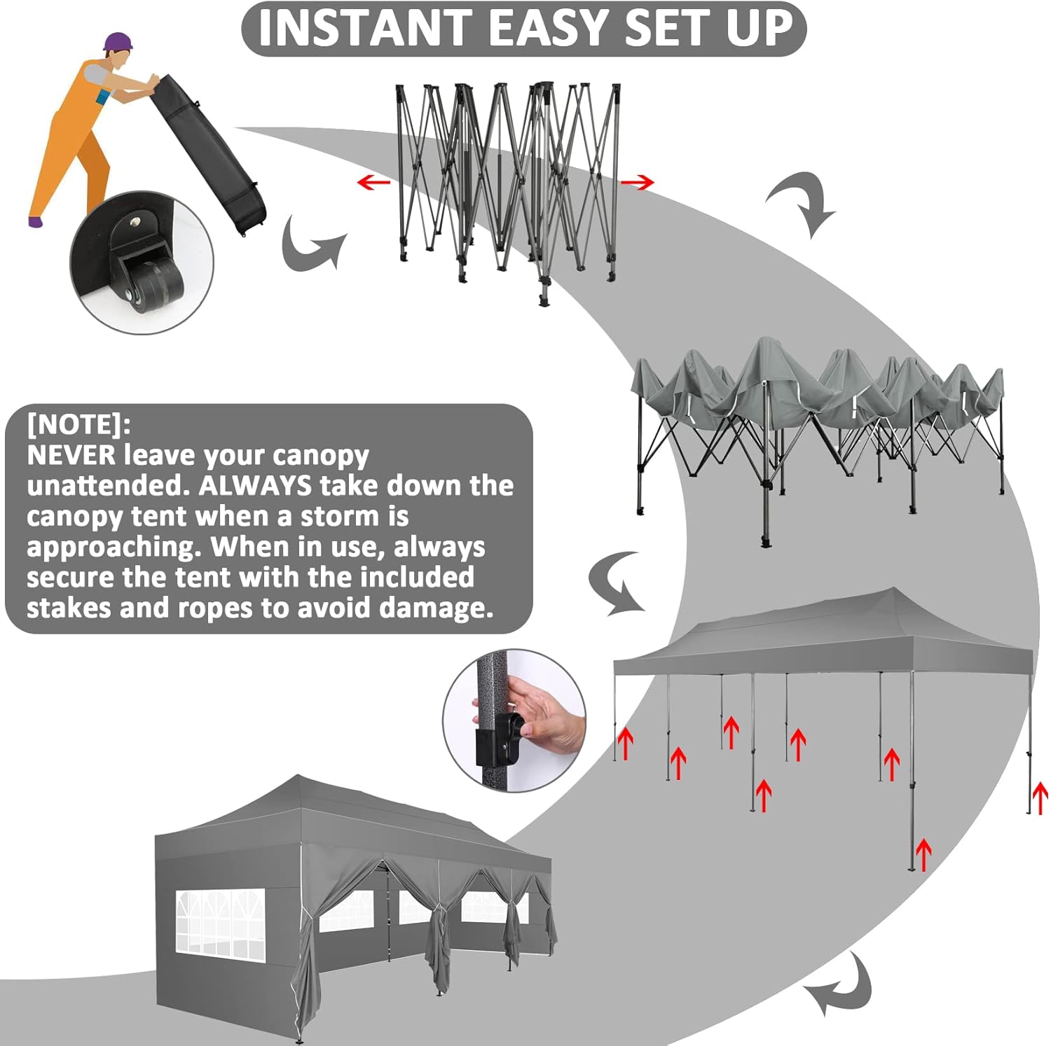 COBIZI 10x30 Pop Up Canopy with 8 Sidewall,Heavy Duty UPF 50+ All Season Wind Waterproof Commercial Outdoor Wedding Party Tents for Parties Canopy Gazebo with Roller Bag(10 x 30 ft Gray)