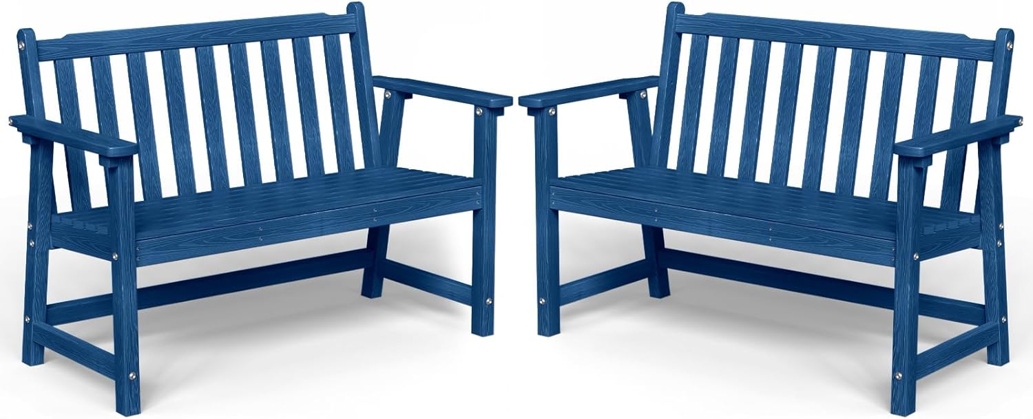 Outdoor Bench, 2-Person HDPE Garden Bench, All Weather Poly Patio Bench for Outdoors, Garden, Backyard, Porch and Park, 550 lbs Weight Capacity, Navy Blue, 2 Pack