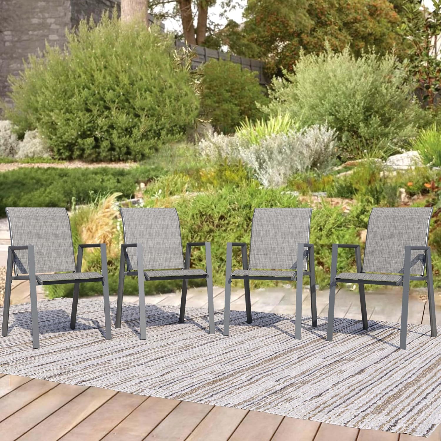 Outdoor Patio Chairs Set of 4, Grey Stackable Outdoor Chairs, Lightweight Patio Set with High Back, Metal Dining Chair for Lawn, Garden, Yard and Deck