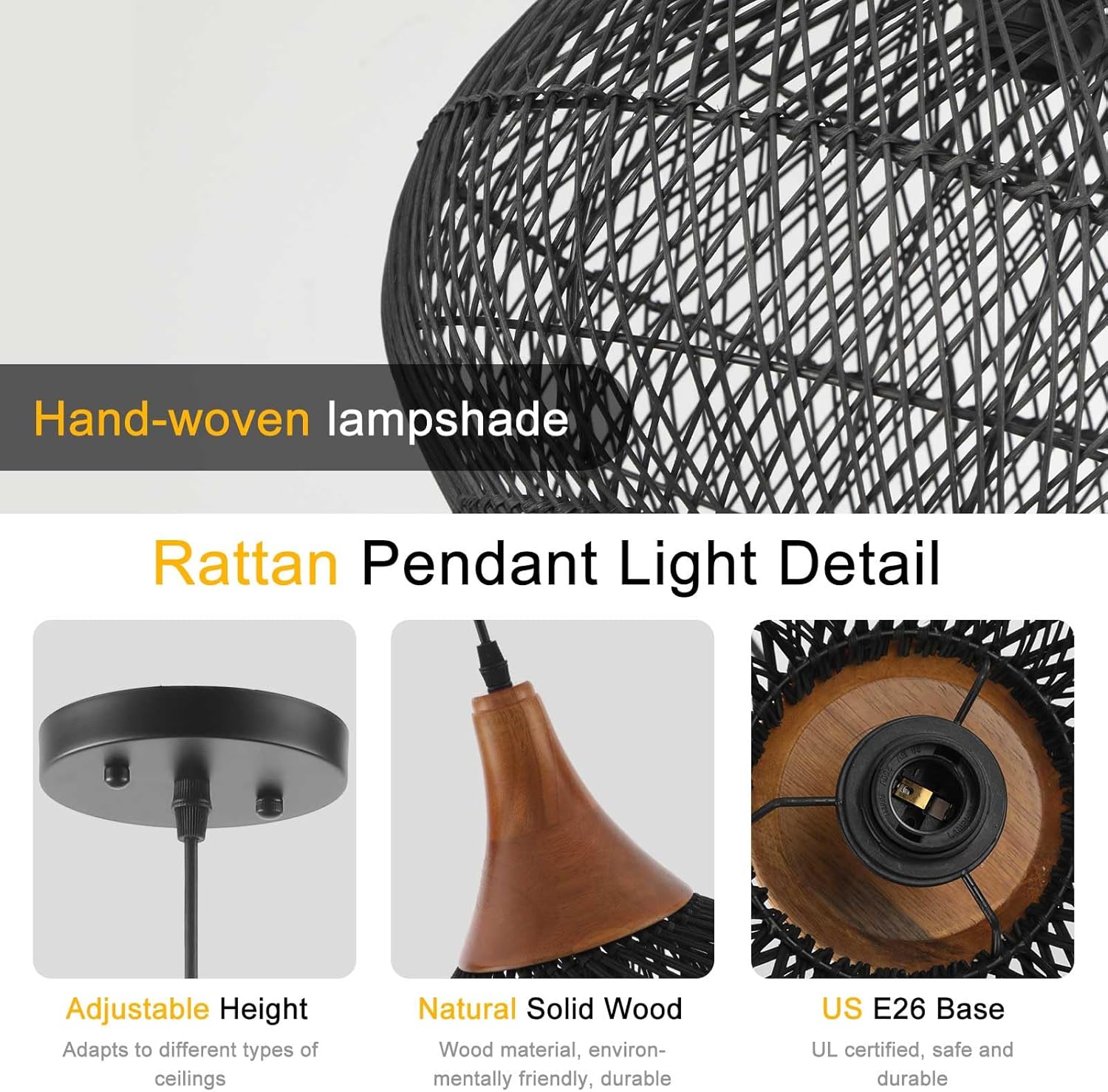 - Bulb Requirements & Dimmable: This black rattan pendant light uses a standard E26 lamp base, Max 60W. This woven pendant light fixture is compatible with all kinds of E26 bulbs. It can be dimmed when using dimmable bulbs and dimmable switches (Bulb and Switch Not Included)