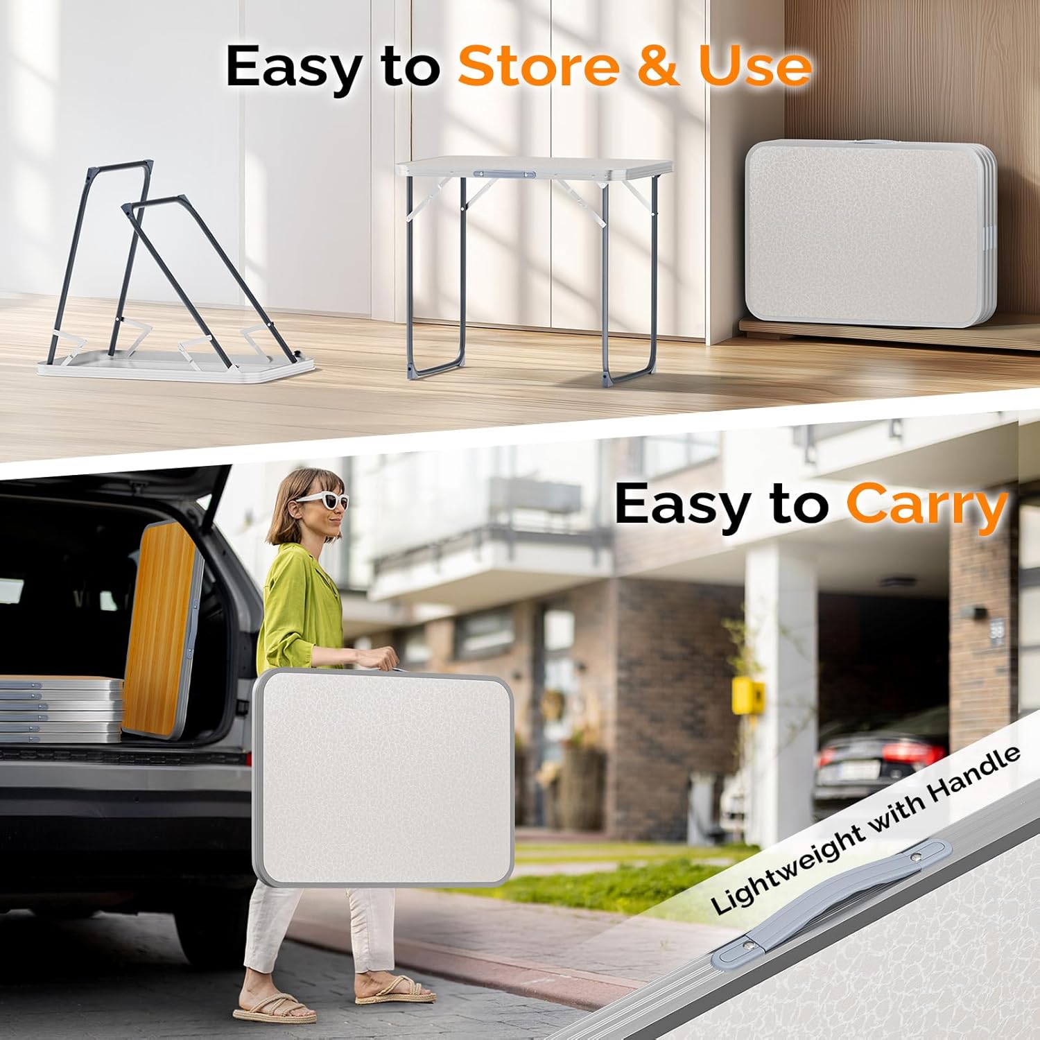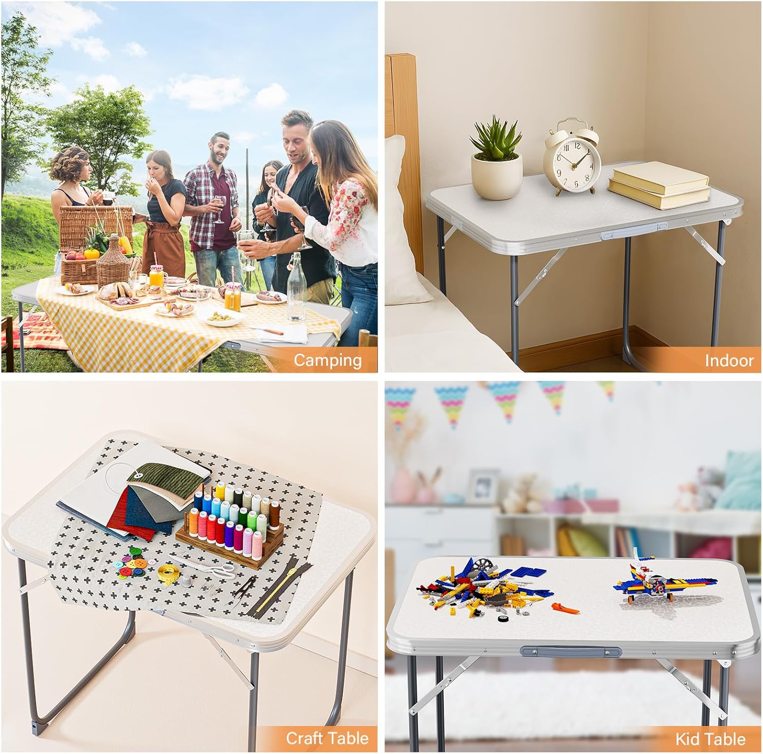 - MULTIPURPOSE TABLE: The bi-folding table is universal. Perfect for outdoor and indoor activities, camping, picnic, hiking, fishing, Dining, BBQ, party, travel, gathering, concert, sports, event.