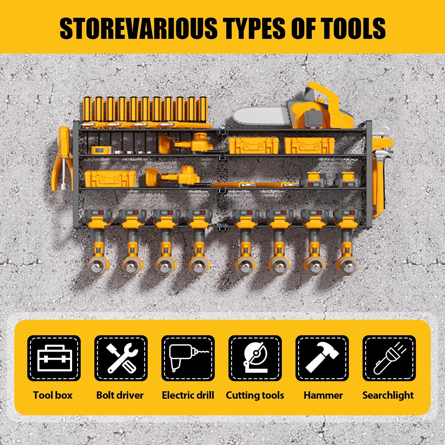 - [Wall Mount Power Tool Organizer] - 4 layer design, there are more space for battery packs, Features 8 cordless drill holders, each tool has it's own place, no need to look around any more. Helps organize your workspace.